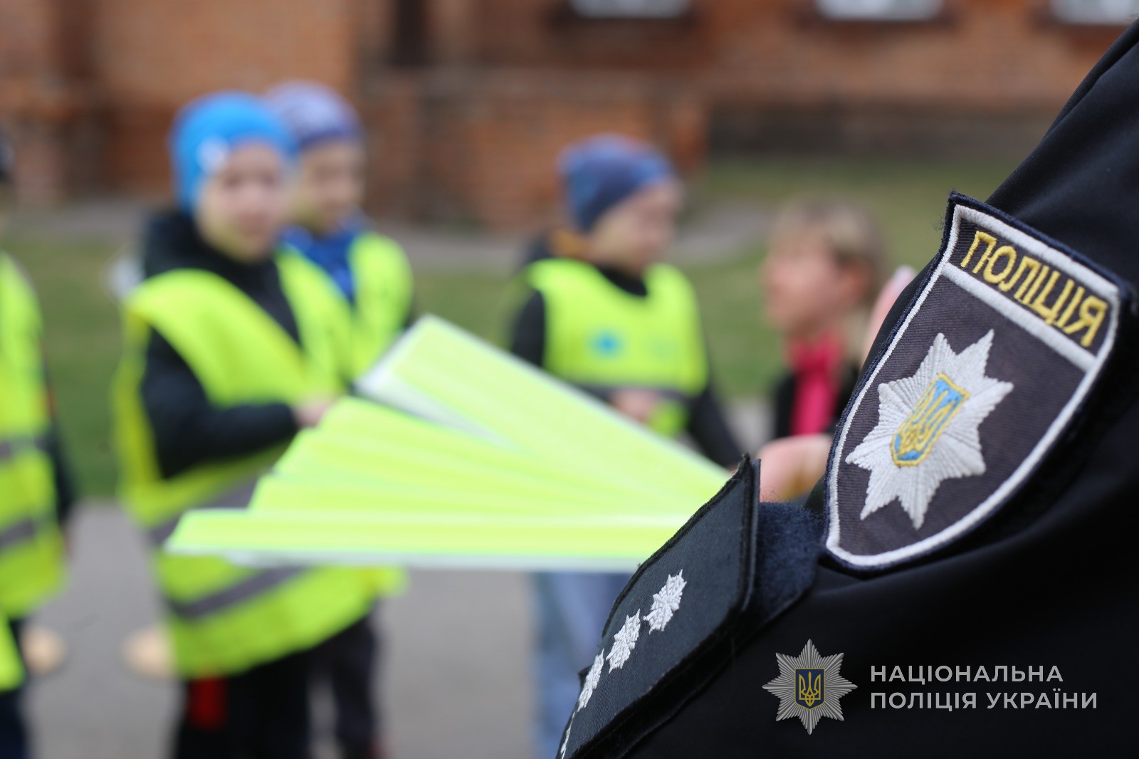 Також, поліцейські звернули увагу на безпеку дітей у темну пору доби. Для того аби діти були помітні у темряві на дорозі, правоохоронці роздали хлопцям та дівчатам світлоповертальні браслети.