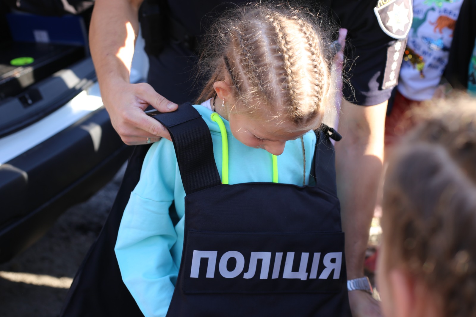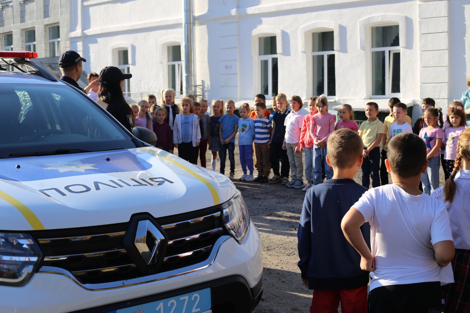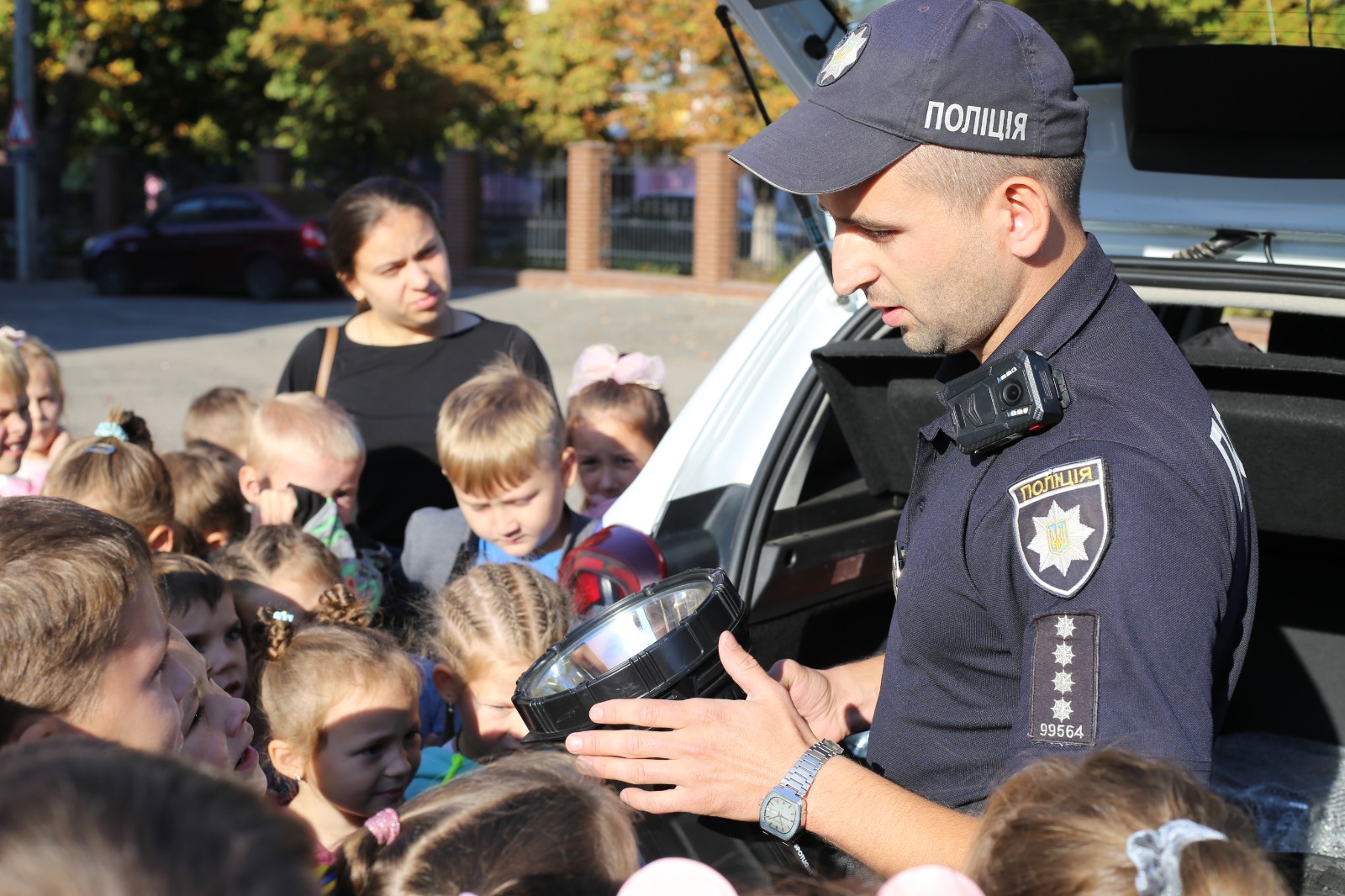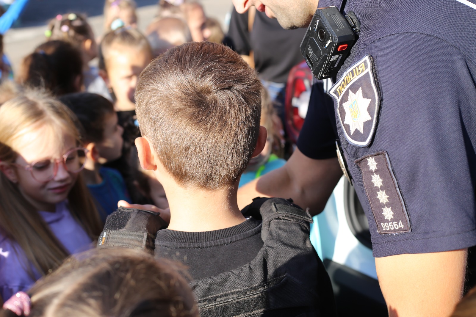 По завершенню заходу діти мали можливість наочно ознайомитися із службовим транспортом та спецзасобами поліцейських, які використовуються у службовій діяльності правоохоронців. Першокласники із захватом все роздивлялися та фотографувалися на пам’ять.