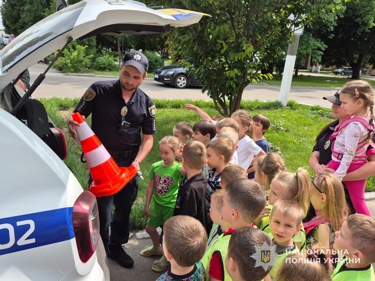 До заходу приєднався й поліцейський офіцер громади Володимир Сангул. Він показав дітям службовий автомобіль, розповів про його призначення та обладнання. Діти з захопленням розглядали автівку, сиділи всередині та спробували скорстатися спецсигналами, що викликало у них море позитивних емоцій.
