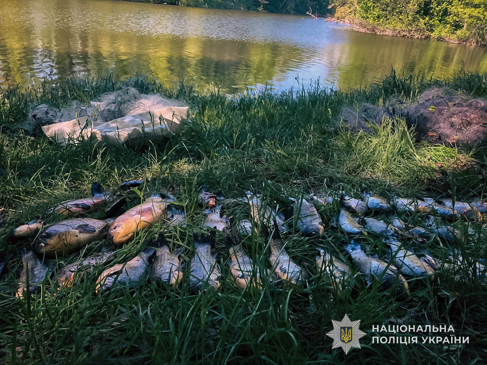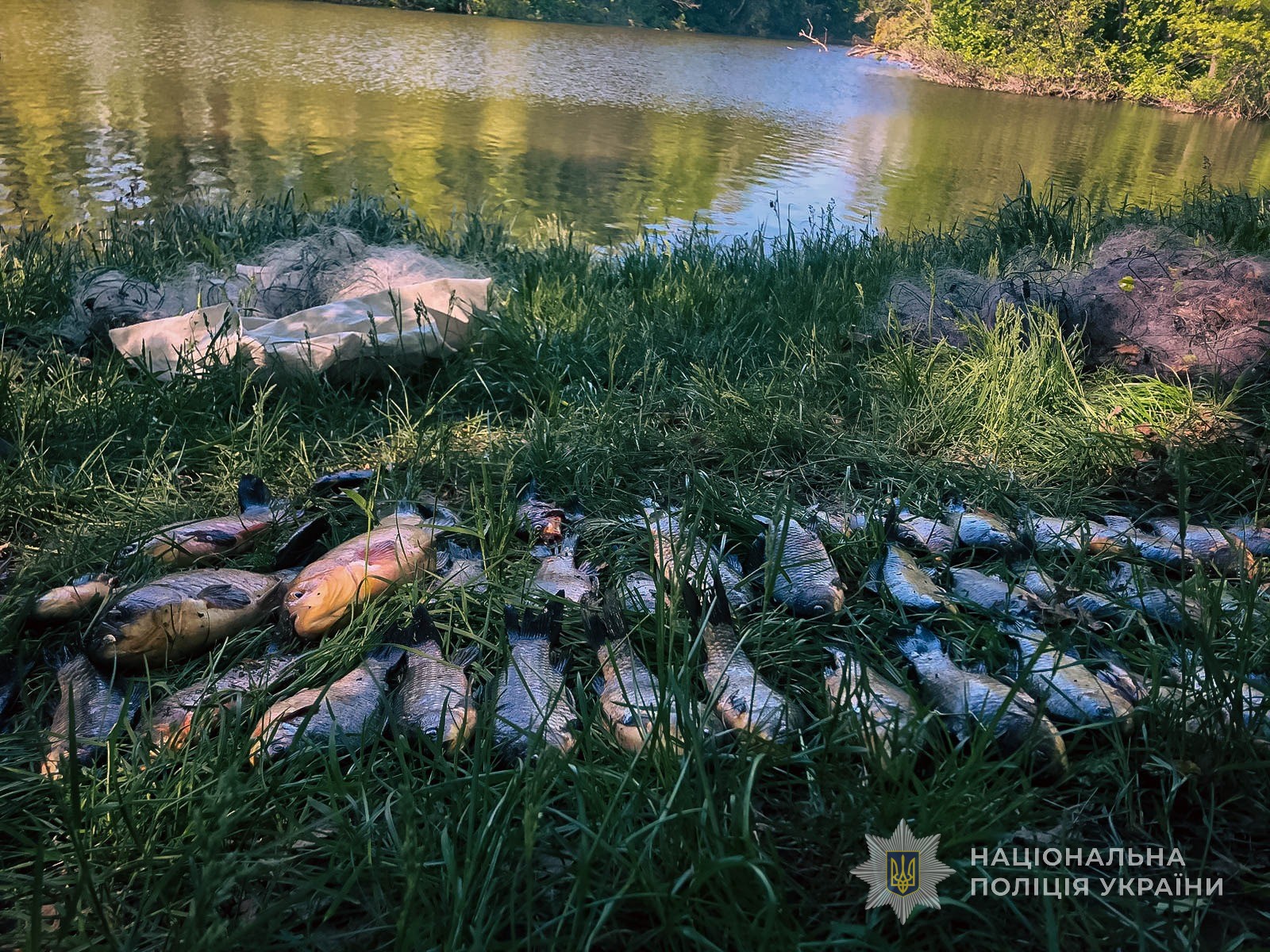 На одному з ставків працівниками поліції було виявлено осіб, які за допомогою заборонених засобів лову (сіток) і гумового човна, займались виловом риби. Протиправні дії порушників задокументовано, точні збитки, завдані довкіллю встановлюються, однак за попередньою оцінкою сягають більш ніж 80 тис.грн.