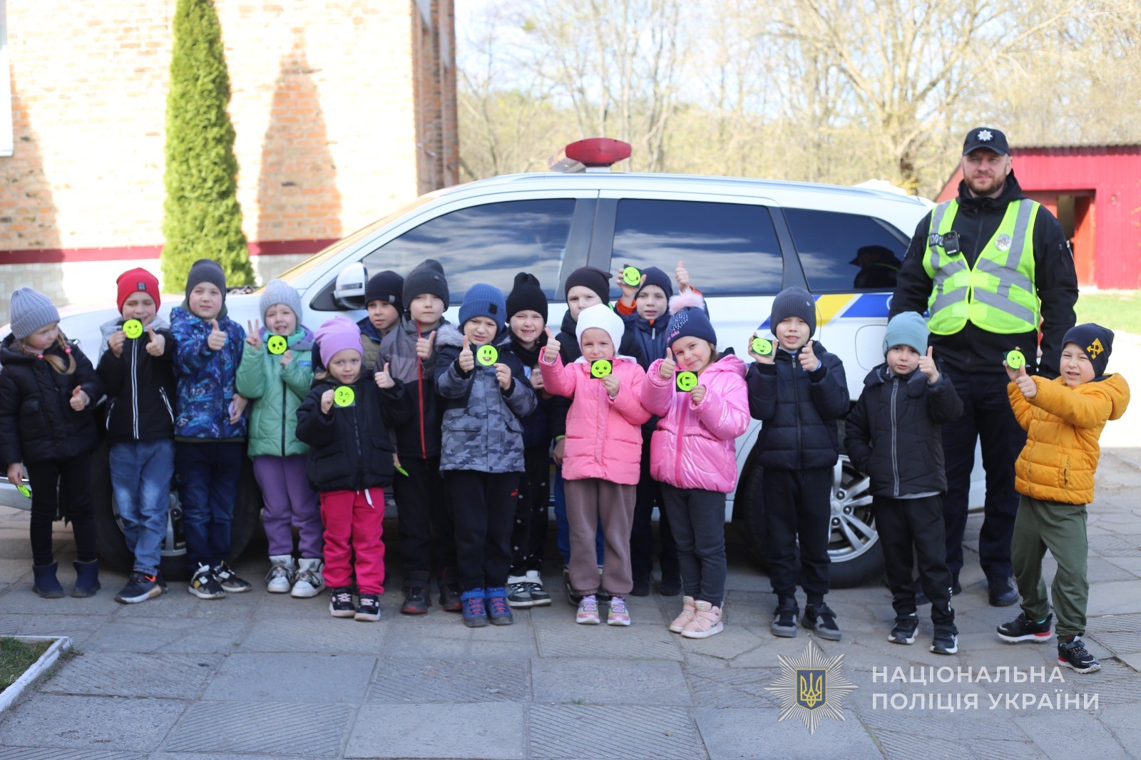 Під час візиту поліцейські пояснили хлопчикам та дівчаткам про те, що переходити дорогу можна тільки на пішохідних переходах разом з дорослими за руку. Також поліцейські зауважили про те, що категорично забороняється раптово вибігати на проїжджу частину дороги, або переходити її в невстановленому місці. Адже це може бути небезпечно.