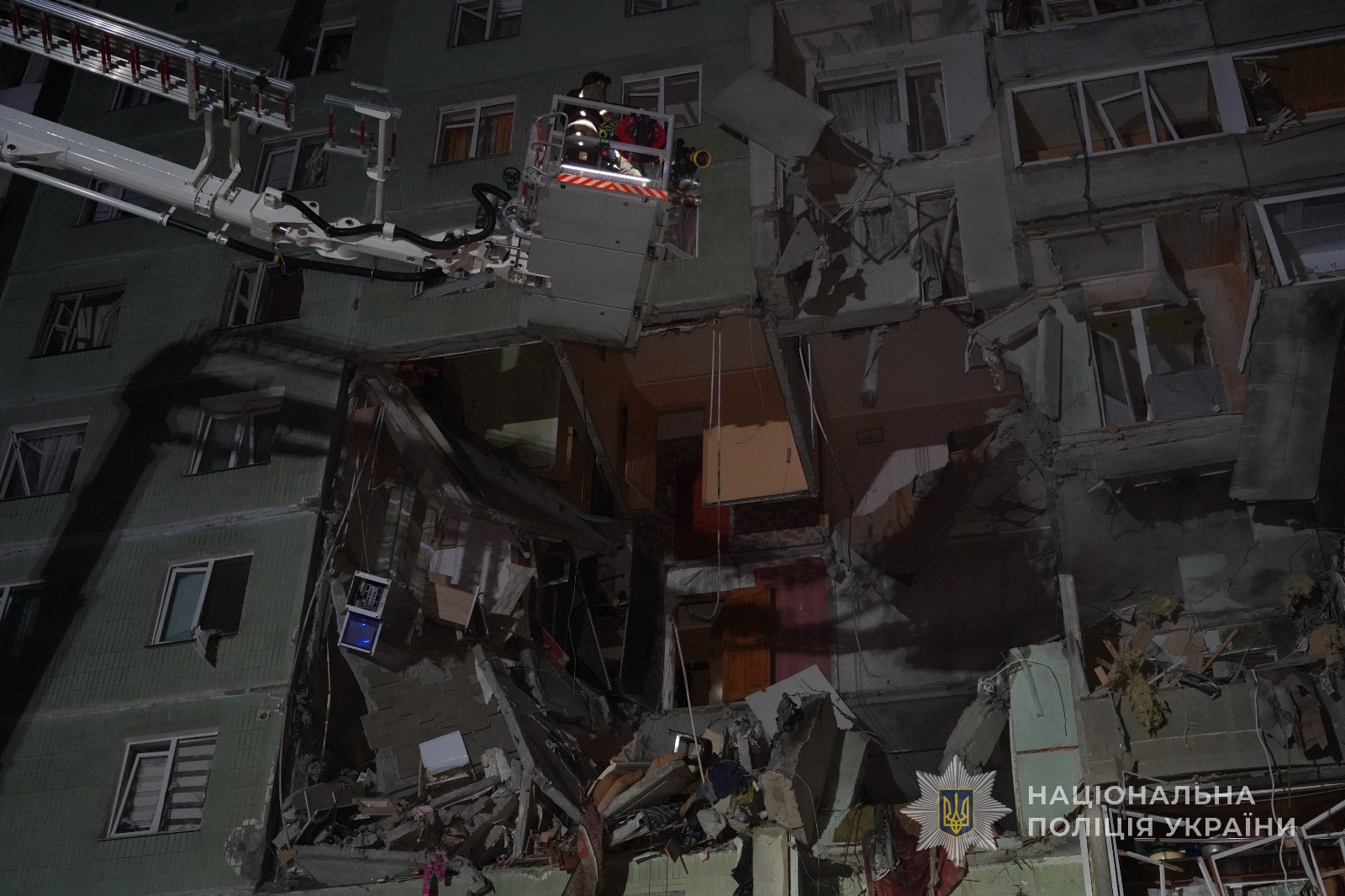 у результаті влучання БПЛА поранено семеро мирних мешканців, серед яких дитина. Пошкоджень зазнав десятиповерховий житловий будинок.