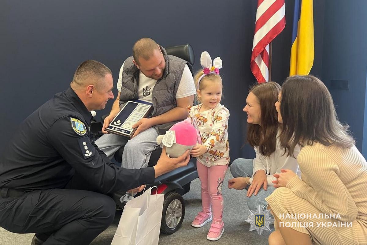 Візит відбувся під час чергового етапу в процесі відновлення Сергія та його родини у Києві. У вересні минулого року поліцейський отримав тяжкі поранення під час виконання службового обов’язку. Пізніше, унаслідок ракетного удару по місту Суми, постраждали його дружина Дар’я та маленька донечка Саша. Дівчинка зазнала серйозних травм, тож їх реабілітація триває і досі.