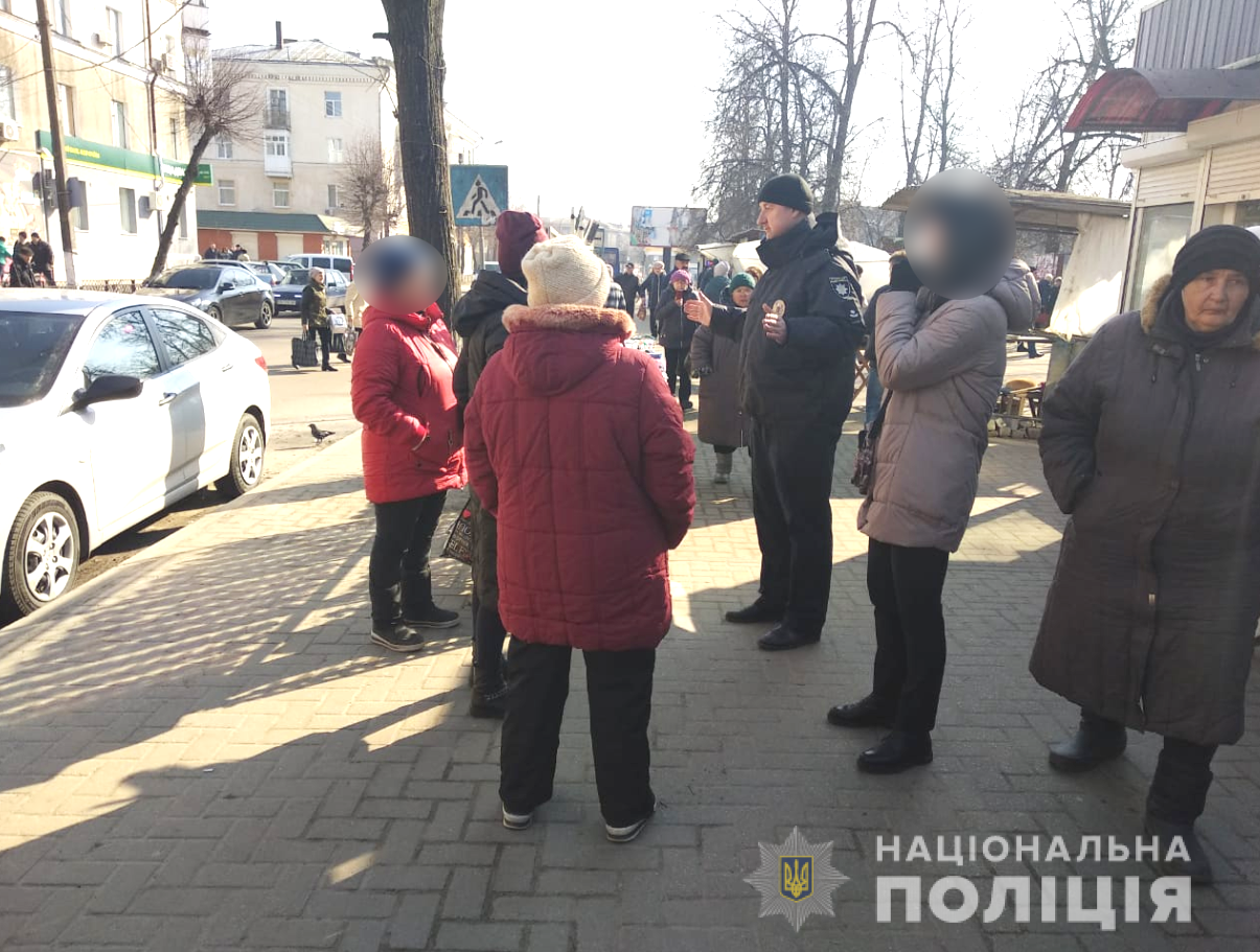 Під час профілактичного рейду по місцевому ринку, співробітники поліції роз’яснювали громадянам норми законодавства та розповідали про встановлені тимчасові обмеження під час карантину.