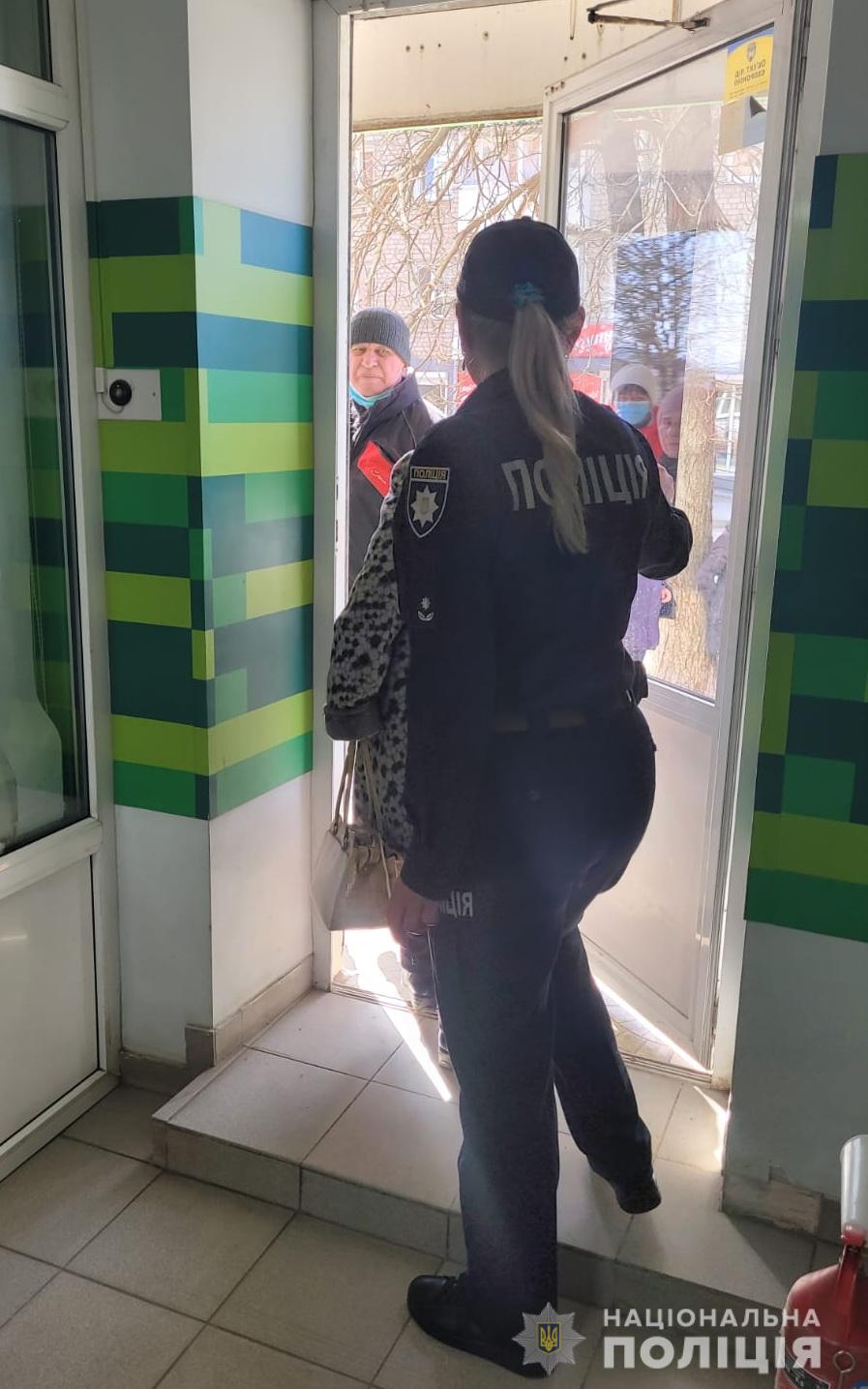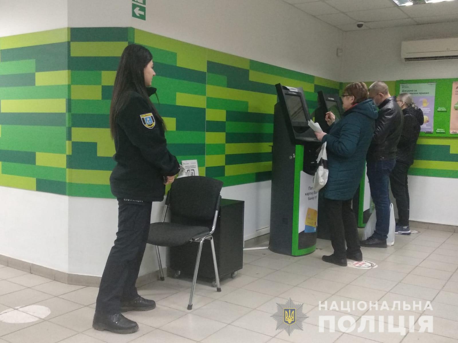 Не залишаються без уваги правоохоронців і місця скупчення громадян. Так, під час видачі грошових коштів працівники поліції забезпечують охорону публічної безпеку та порядку.