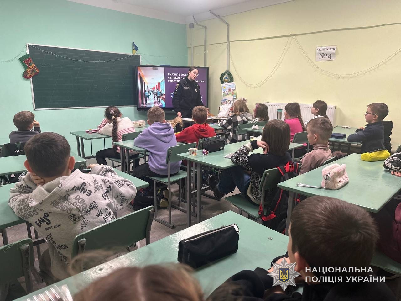 Під час зустрічі поліцейська пояснила дітям, що таке булінг, які його прояви та чому важливо не замовчувати подібні випадки. Вона розповіла, як правильно діяти у таких ситуаціях і до кого звертатися по допомогу. Також офіцер звернула увагу на наслідки таких дій та пояснила, що за вчинення булінгу передбачена адміністративна відповідальність, а в окремих випадках її можуть нести й батьки.