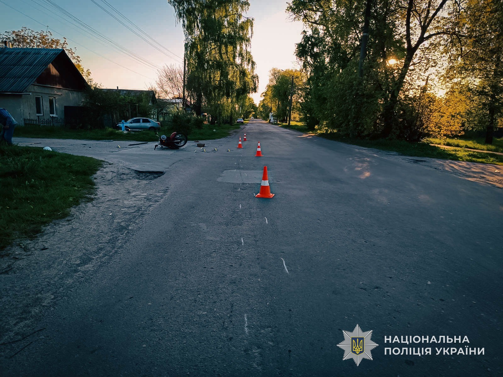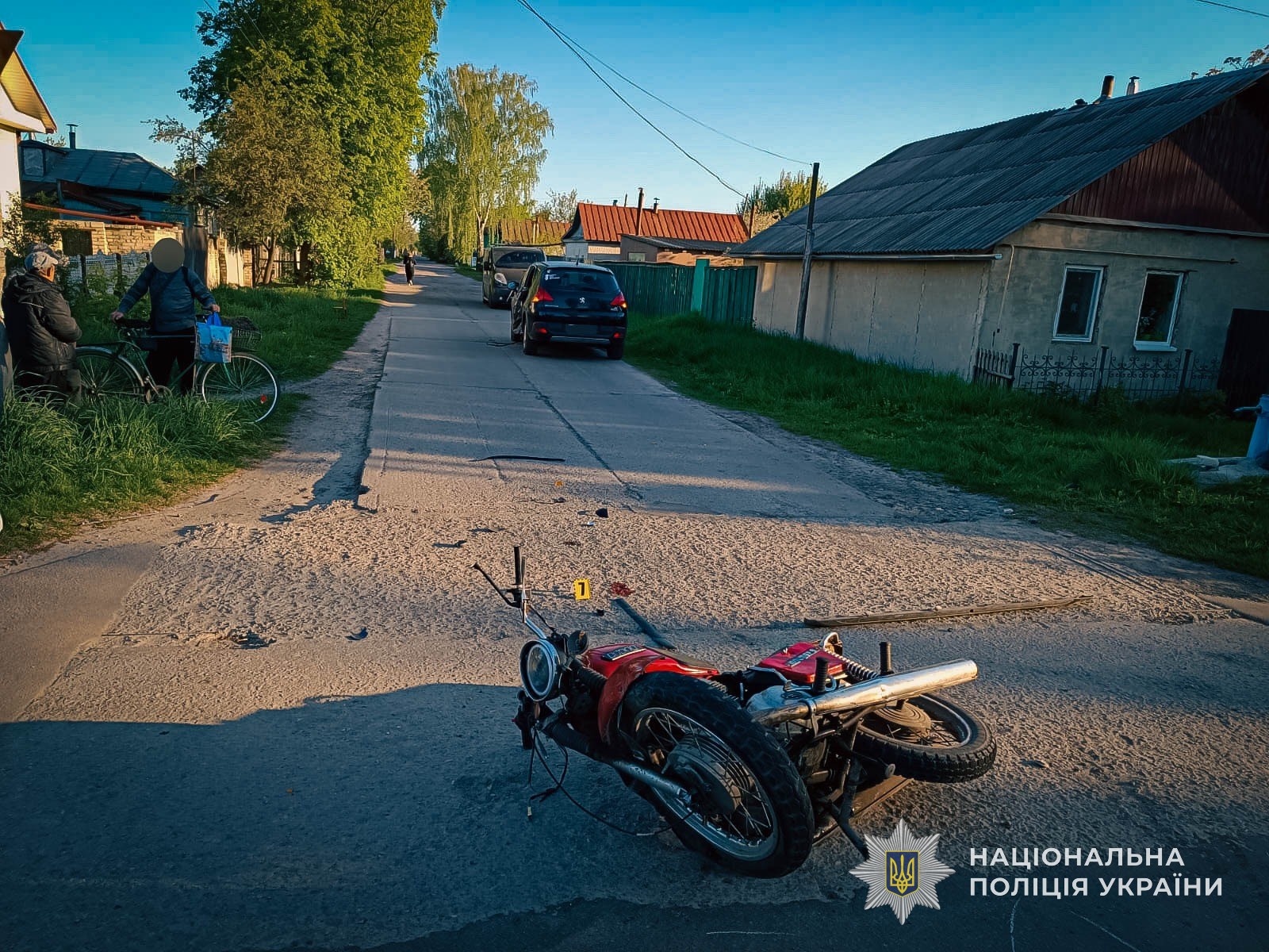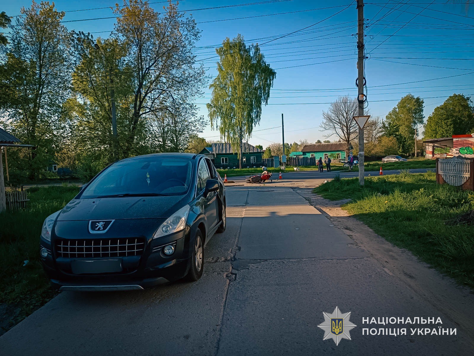 Прибувши на місце події поліцейські попередньо встановили, що ДТП трапилась близько 17.00 в м. Шостка по вул. Кленовій. За кермом мотоцикла перебував 20-річний місцевий житель. Не впоравшись з керуванням водій двоколісного допустив зіткнення з автомобілем «Пежо», за кермом якого був 30-річний чоловік.