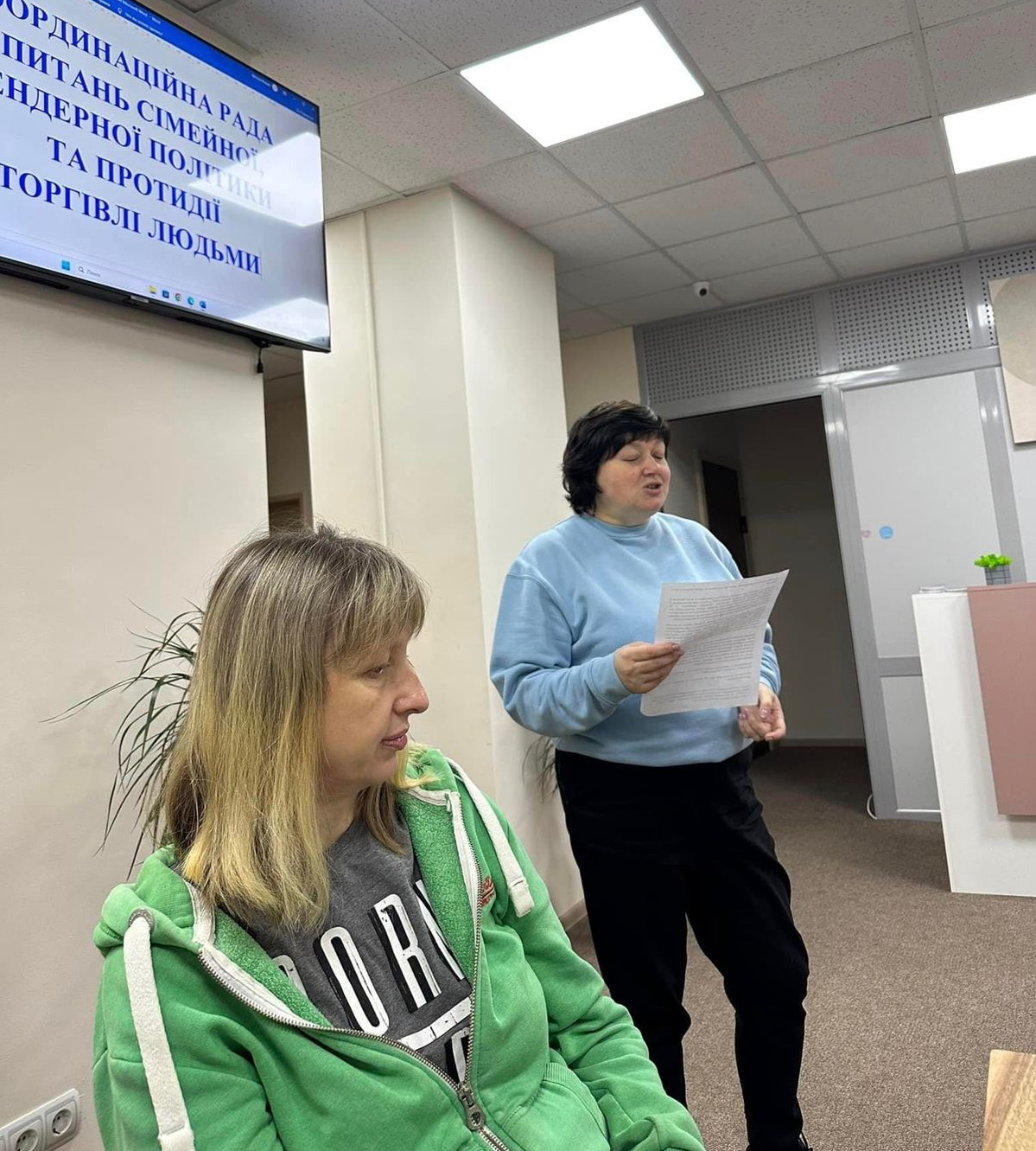 Окремо зверталась увага на питання торгівлі людьми. Учасники обмінялися думками щодо організації роботи в рамках виконання програми протидії такому явищу, вирішувались питання покращення інформування членів громади з проблеми та ризиків потрапляння в ситуацію торгівлі людьми. Наприкінці наради присутні обговорили питання партнерської взаємодії та надання послуг постраждалим від гендерно зумовленого насильства.