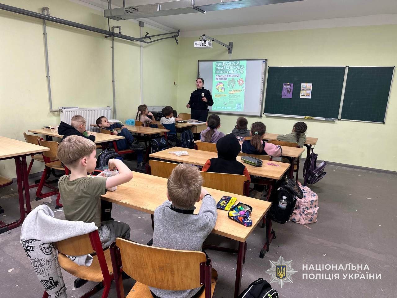 Окремо офіцер нагадала школярам правила мінної безпеки, що особливо важливо в умовах воєнного часу. Поліцейська показала тематичні навчальні відео та пояснила, як виглядають вибухонебезпечні предмети, де їх можна виявити і як діяти у разі небезпечної знахідки. Вона наголосила на головному правилі: не торкатися підозрілих предметів, відійти на безпечну відстань і повідомити дорослих або відповідні служби.
