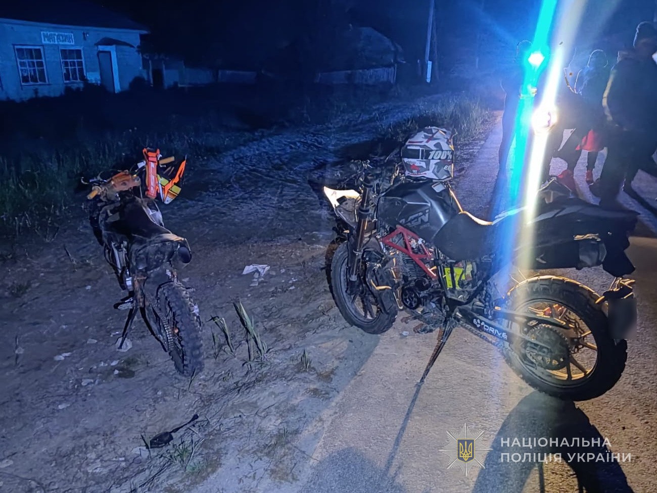 Як попередньо встановили правоохоронці, 16-річний водій мотоциклу "Zongser", рухаючись разом з 17-річною пасажиркою, допустив зіткнення з мотоциклом "Tekken", під керуванням 23-річного чоловіка, який рухався попереду в попутному напрямку. Останній перебував у стані алкогольного сп’яніння. Внаслідок пригоди водії транспортних засобів були госпіталізовані до лікарні.