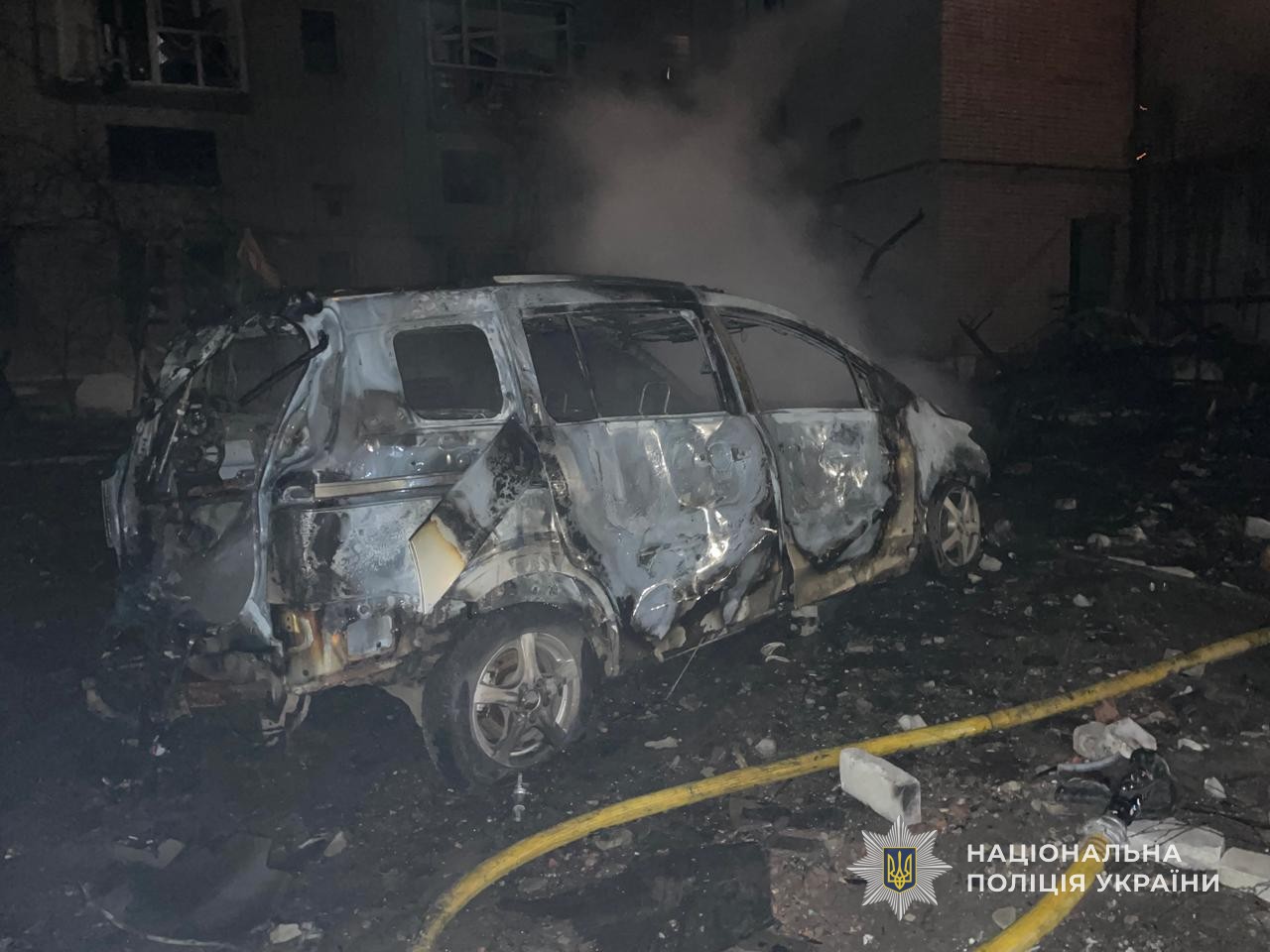 Правоохоронці здійснюють обстеження місця удару, вилучають залишки безпілотного літального апарату, фіксують пошкодження.