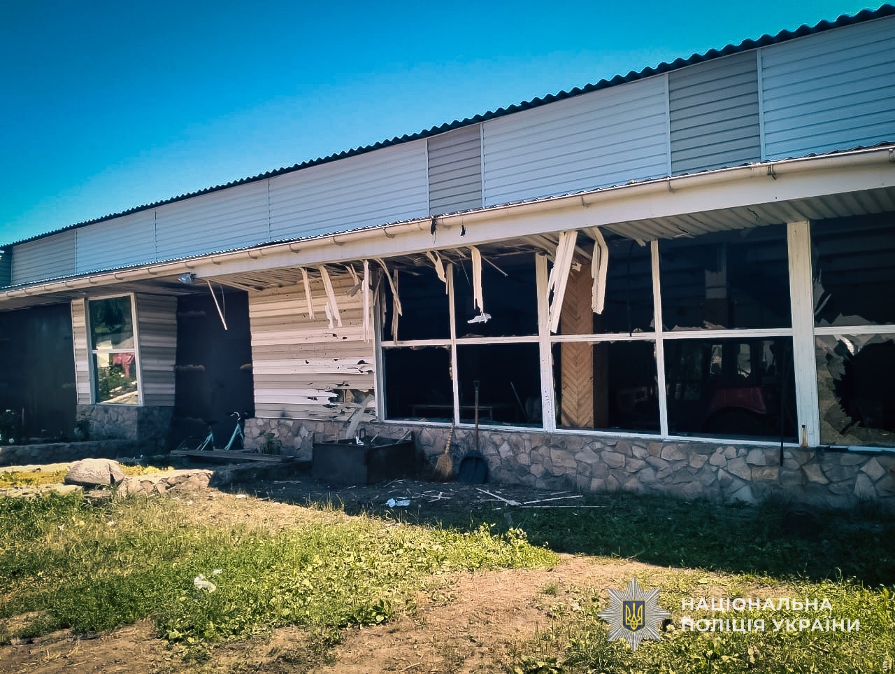 Внаслідок атак окупантів поранень зазнала 1 цивільна особа, пошкоджено приміщення приватного підприємства, приватний будинок та автомобіль.