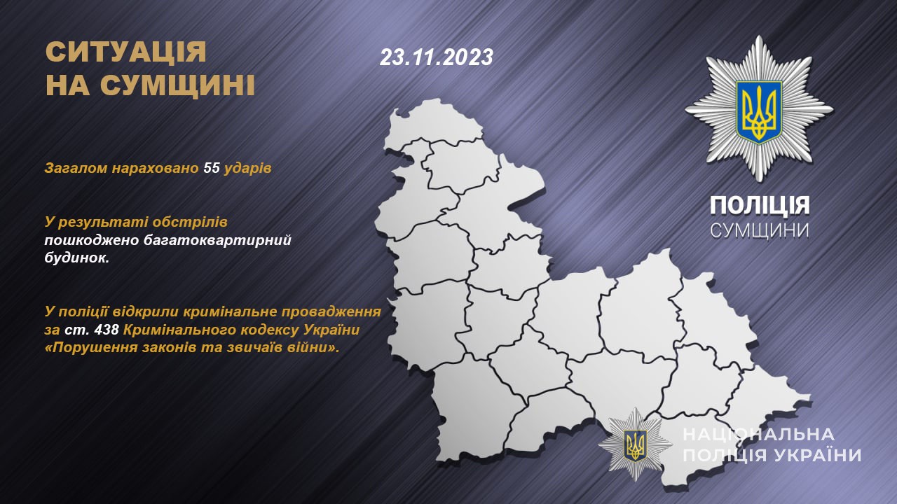 Упродовж минулої доби військові рф обстрілювали територію області. Загалом зафіксовано 55 ударів.
