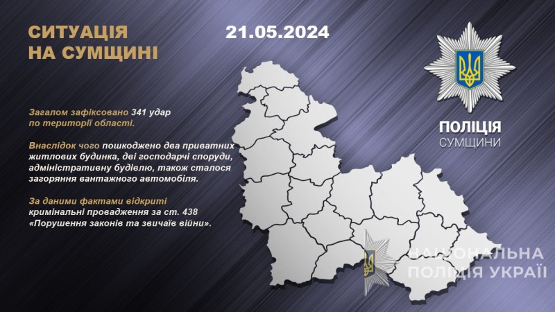 Упродовж минулої доби військові рф знову атакували територію області. Загалом зафіксовано 341 удар.