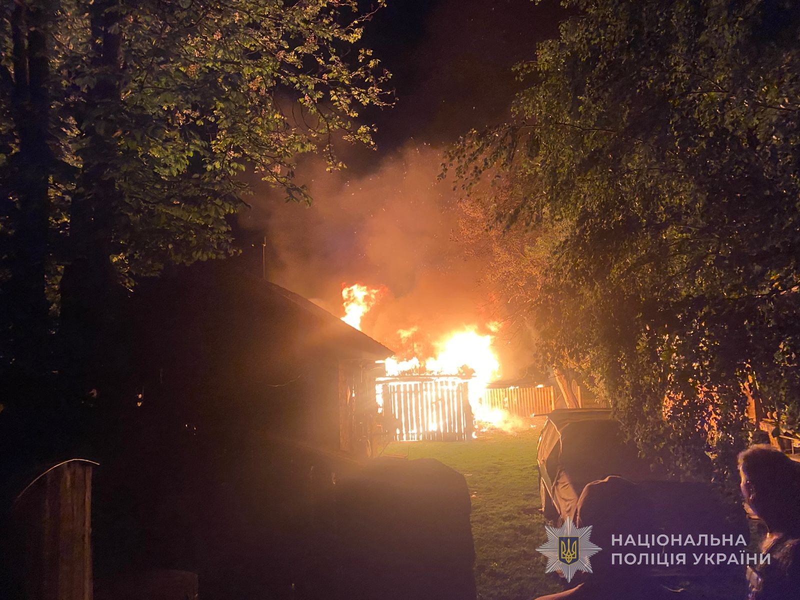 Під час огляду правоохоронці виявили повністю знищене вогнем господарське приміщення та автомобіль «ІЖ 2125», що знаходився всередині. За висновком працівників ДСНС, пожежа почалася через навмисний підпал.