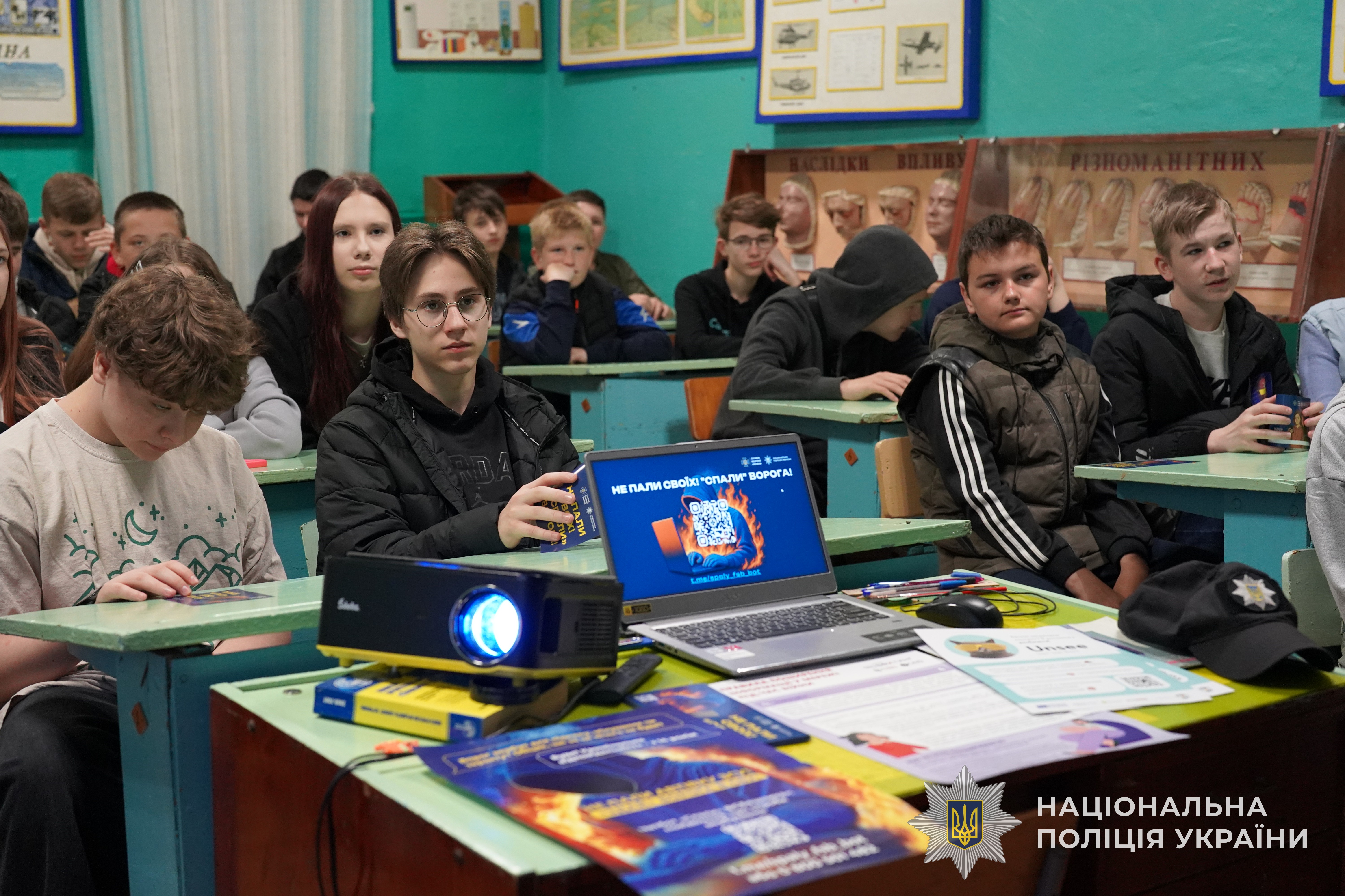 Учні активно долучались до обговорення, ставили запитання щодо методів захисту, алгоритму дій у разі підозрілих повідомлень, а також правових наслідків виконання злочинних завдань.