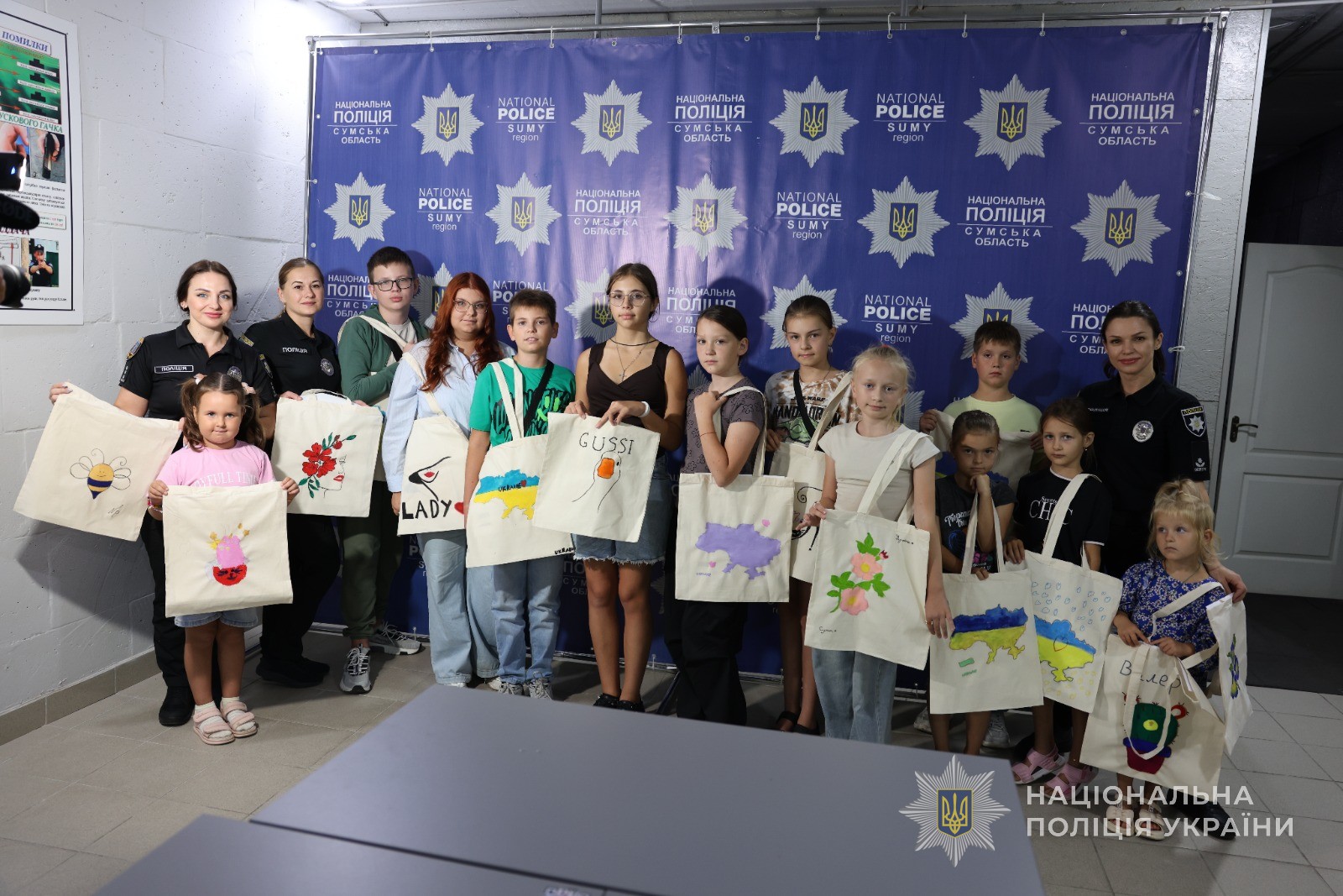 Патріотичну ініціативу реалізував відділ організації соціальної роботи управління кадрового забезпечення ГУНП у Сумській області спільно з представницею ГО «Дівчата». Під час заходу діти розмальовували екосумки — шопери — патріотичними малюнками: прапорами, тризубами, голубами миру, квітами та зображеннями України.