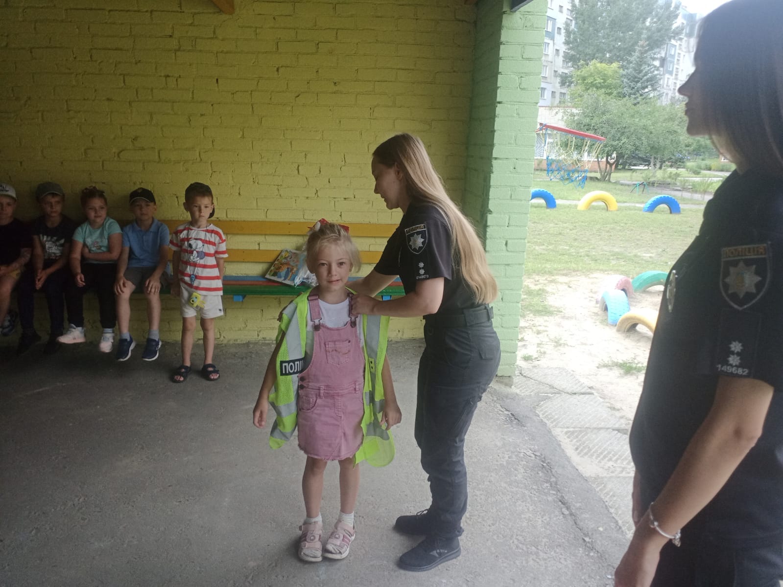 Окрім цього, ювенальні поліцейські розповіли дошкільнятам про Правила дорожнього руху для пішоходів, зокрема про те, як переходити проїзну частину та бути помітним на дорозі у темну пору доби. Ну і традиційно обговорили правила безпечного літнього відпочинку, особливо поблизу водойм.