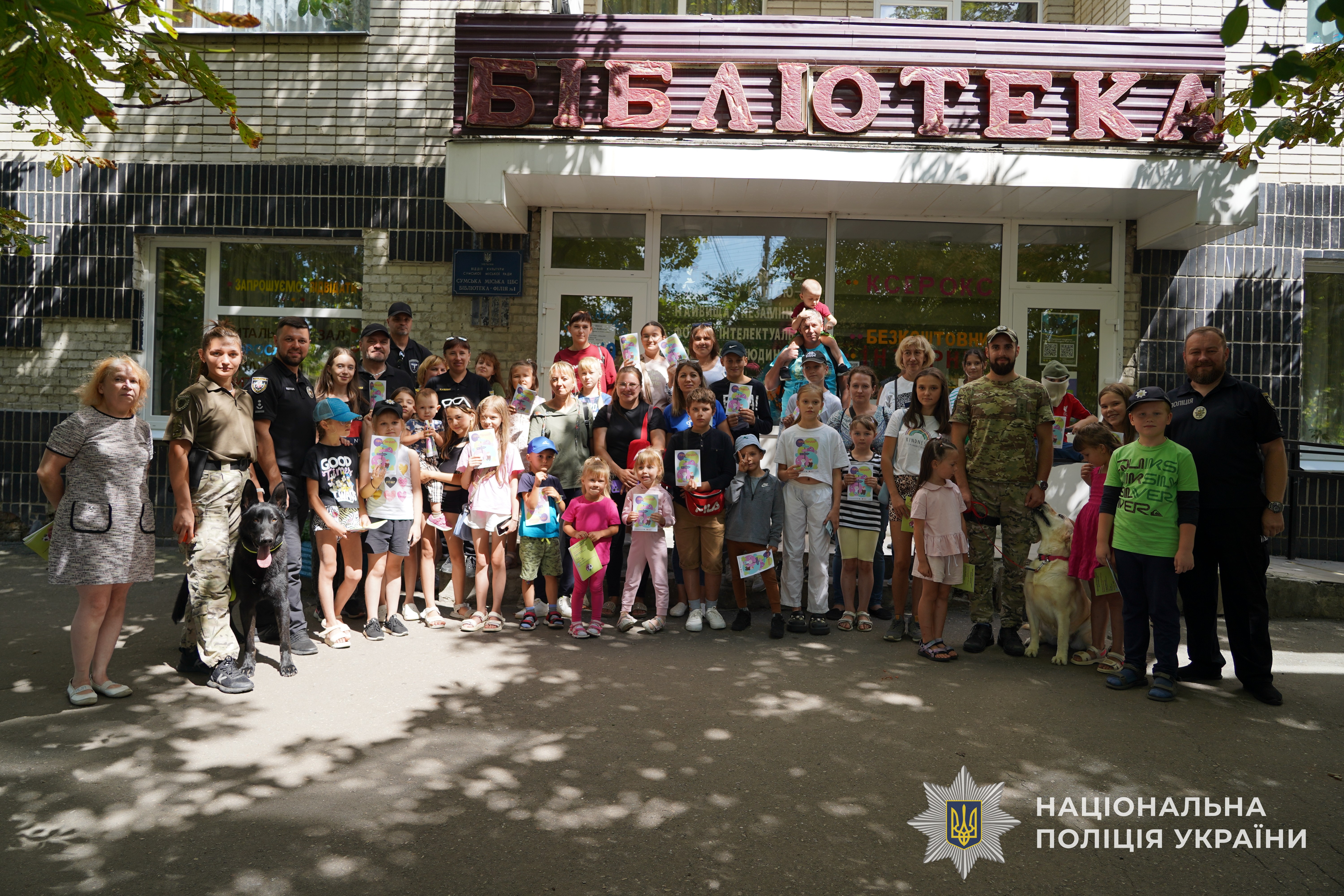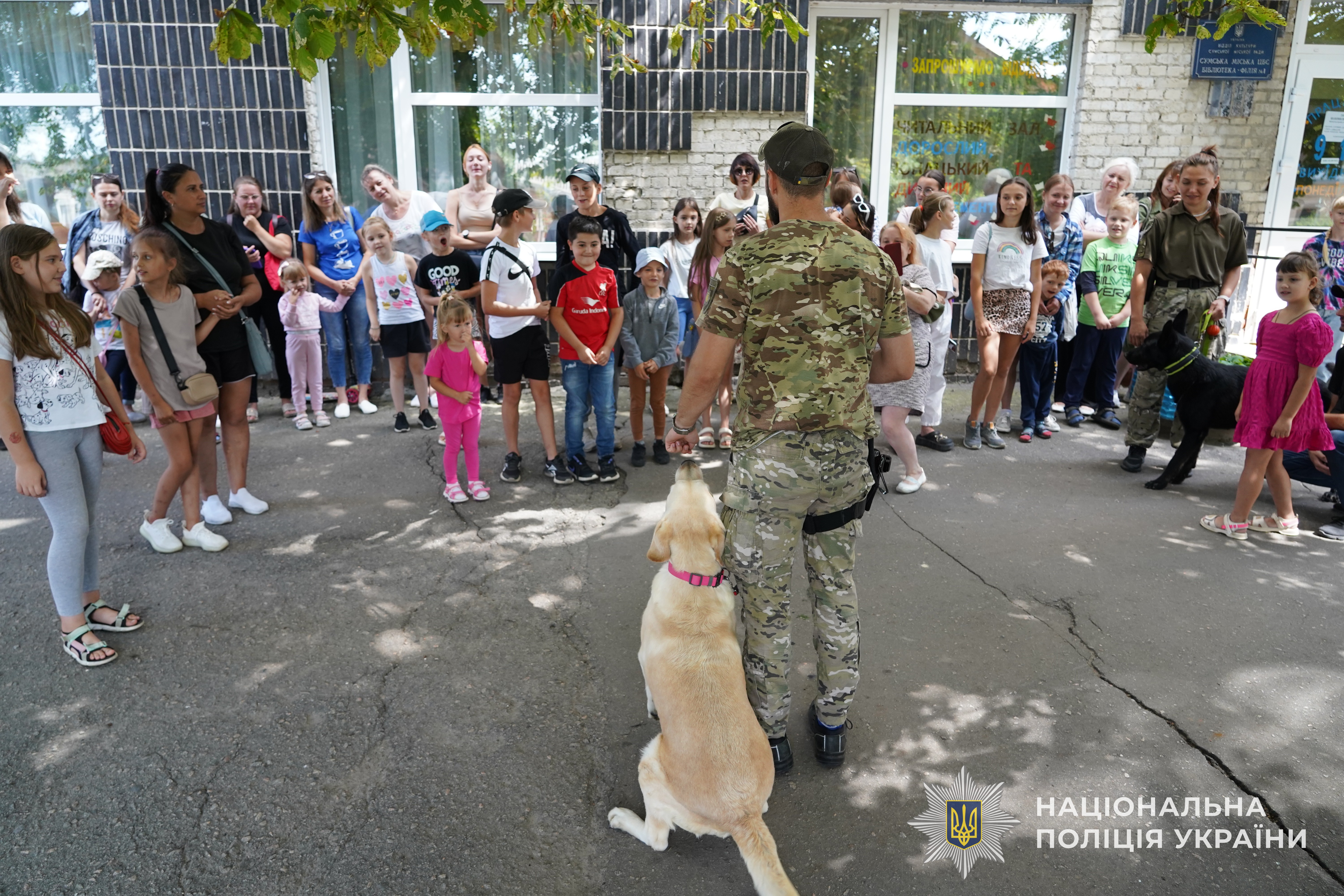 У другій частині заходу відвідувачі бібліотеки ознайомилися з роботою поліцейських кінологічного центру ГУНП в Сумській області та їх чотирилапими помічниками. Зокрема, останні показали як відбувається виявлення боєприпасів службовими собаками. Звісно, кожному присутньому кінологи дали змогу погладити песиків та сфотографуватися разом з ними.