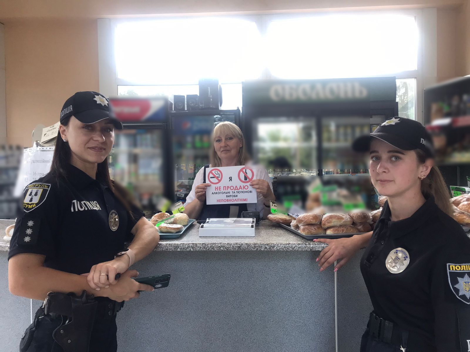 З метою попередження фактів продажу неповнолітнім алкогольних та тютюнових виробів правоохоронці здійснили візити до закладів торгівлі. Під час яких нагадали продавцям, що Законом передбачена відповідальність за продаж алкоголю та тютюну особам, які не досягли 18-річного віку.