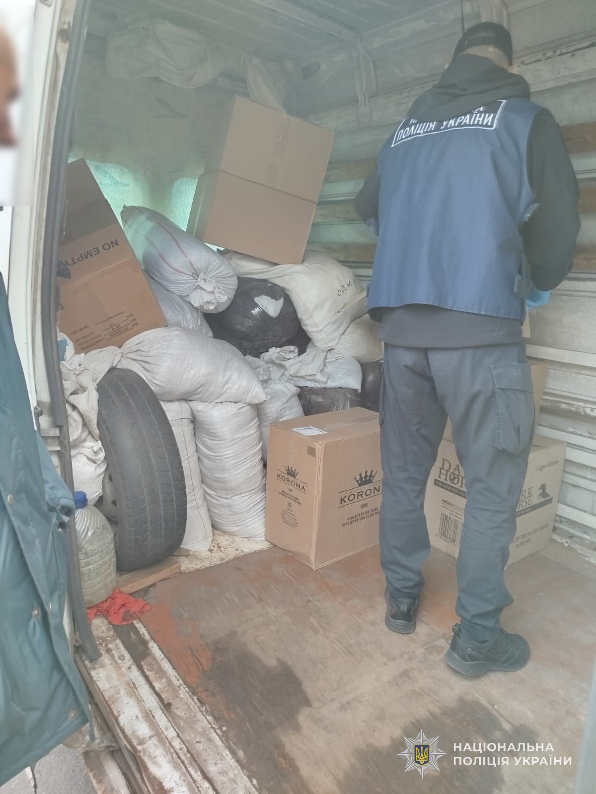 Тож поліцейські провели повторні санкціоновані обшуки та вилучили у чоловіка 40 мішків та 18 полімерних лотків з тютюном, 350 блоків з гільзами, 5 ароматизаторів, а також мобільний телефон та транспортний засіб, які зловмисник використовував для реалізації фальсифікованого товару.