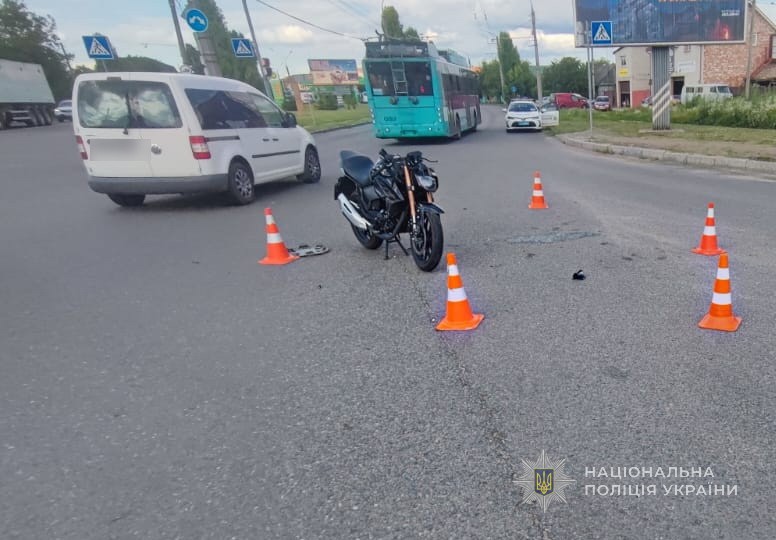 Водій автомобіля "Dacia Logan" допустив зіткнення з мотоциклом "Lifan 18154", у результаті чого керманич двоколісного отримав тілесні ушкодження та був ушпиталений.