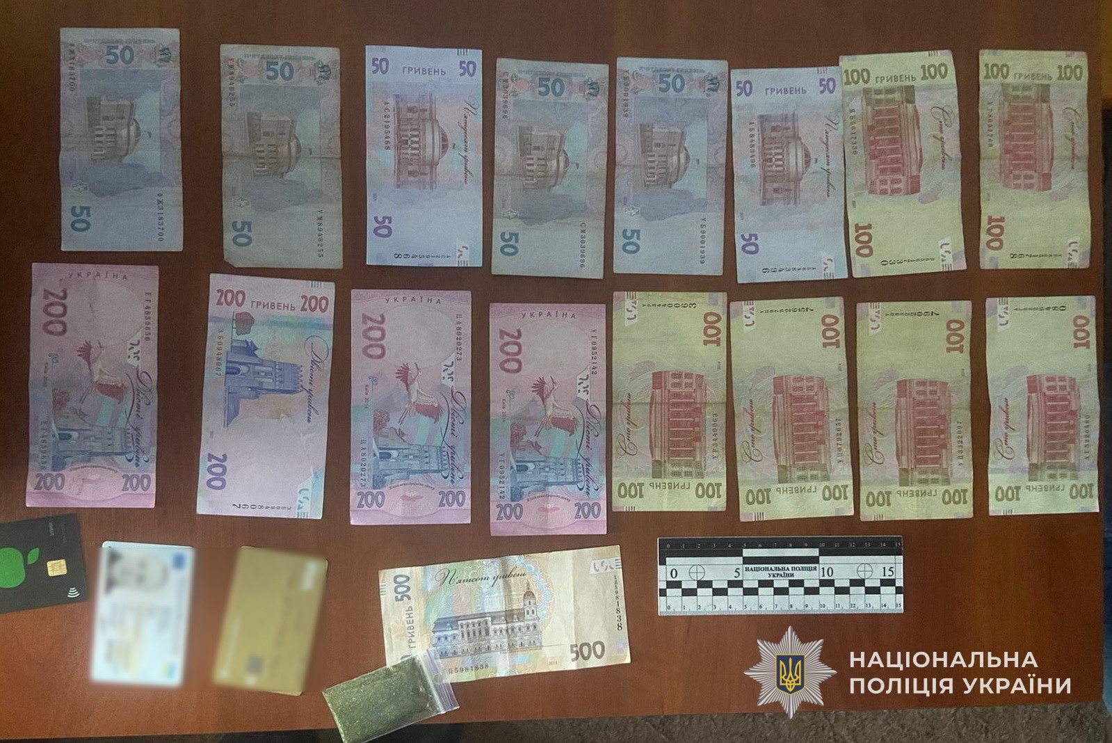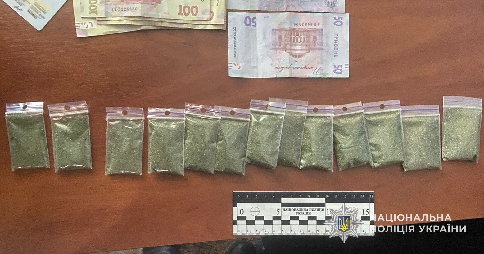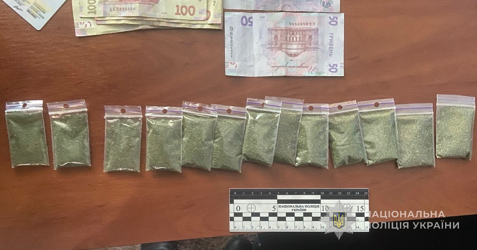 Під час проведення обшуку за місцем проживання жінки працівники поліції виявили 32 зіп-пакети та два пакунки з вмістом сухої подрібленої речовини зеленого кольору, яка згідно проведеної експертизи виявилась "канабісом". Крім того, поліцейські вилучили у зловмисниці грошові кошти в сумі 211 600 грн, 2050 доларів США, 50 євро, 100 рублів рф, які вона ймовірно отримала злочинним шляхом.