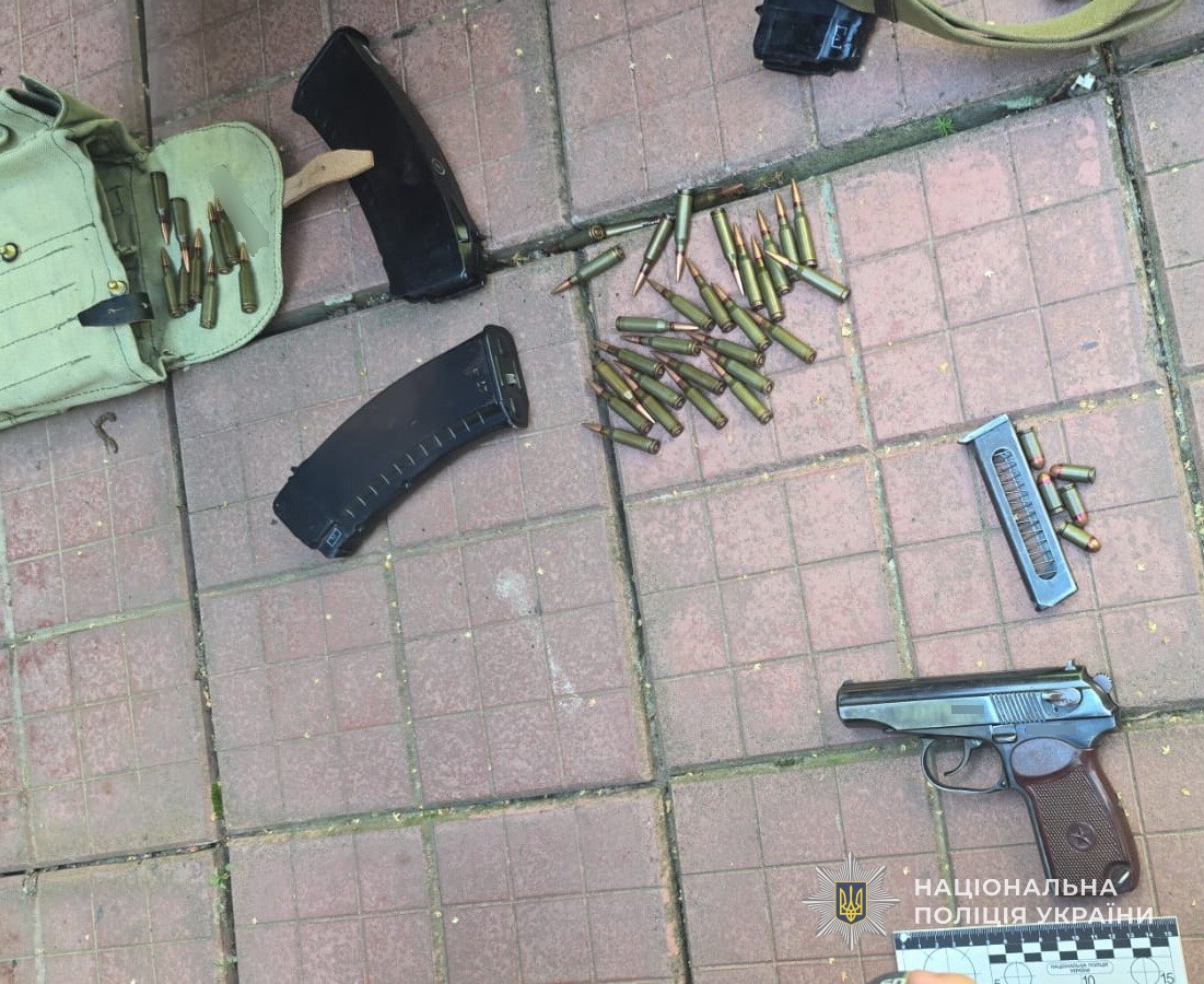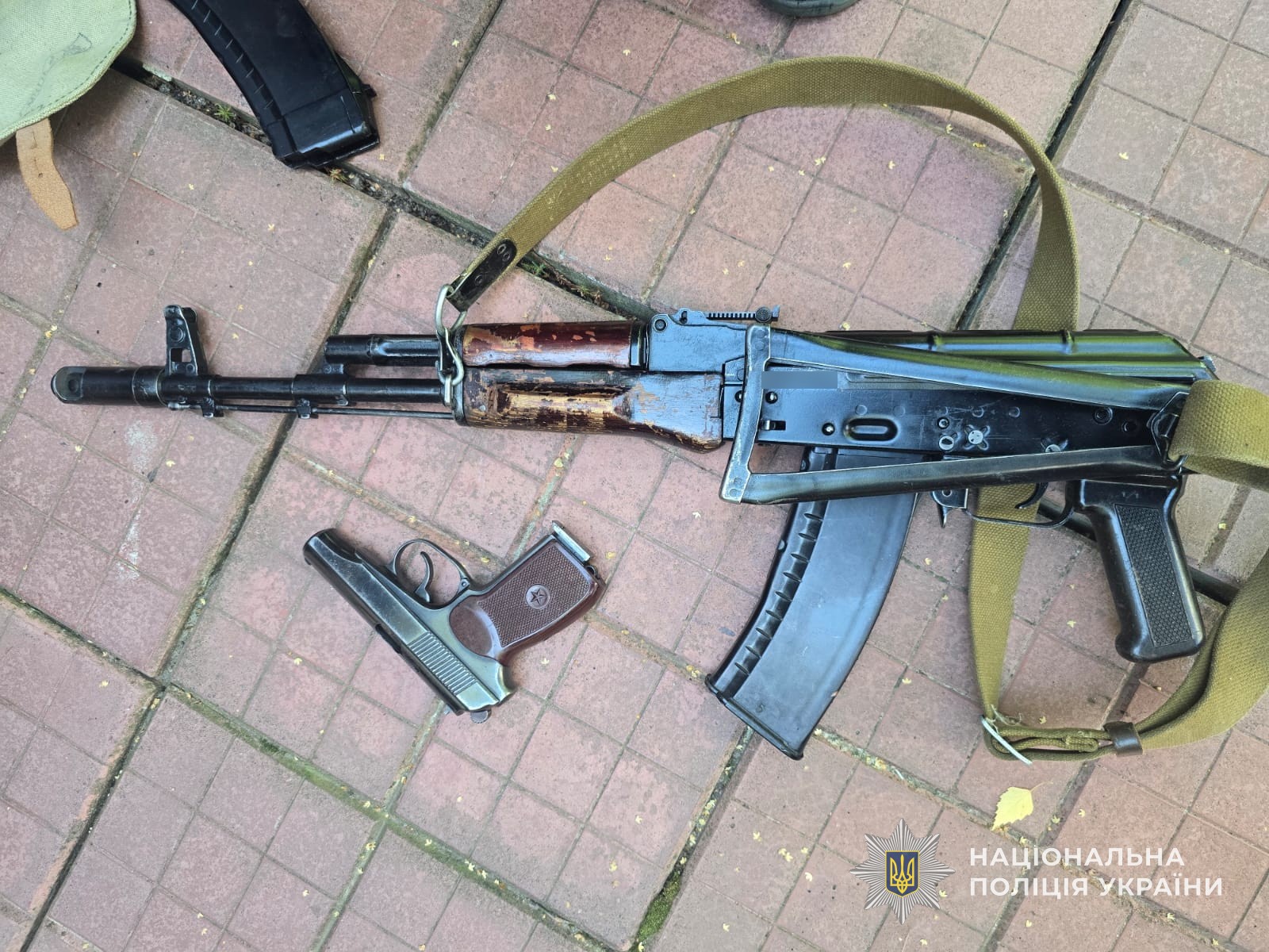 Під час обшуку за місцем мешкання було виявлено автомат «АКС-74» та пістолет «ПМ» з набоями до них. Відносно фігуранта ведеться досудове розслідування.