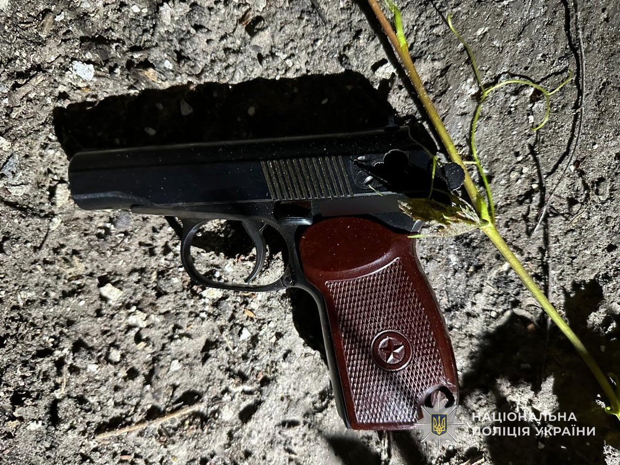 Завдяки злагодженим та професійним діям співробітників патрульної поліції чоловіка затримали в порядку ст. 208 Кримінального процесуального кодексу України. З місця події вилучено зброю «ПМ» з маркуванням, один магазин, 6 набоїв калібром 9 мм. Надалі, за місцем мешкання вилучено 10 набоїв калібром 9 мм, дві гільзи, один ударник, один запобіжник та залишок однієї кулі. Усе знайдене спрямовано на експертне дослідження.