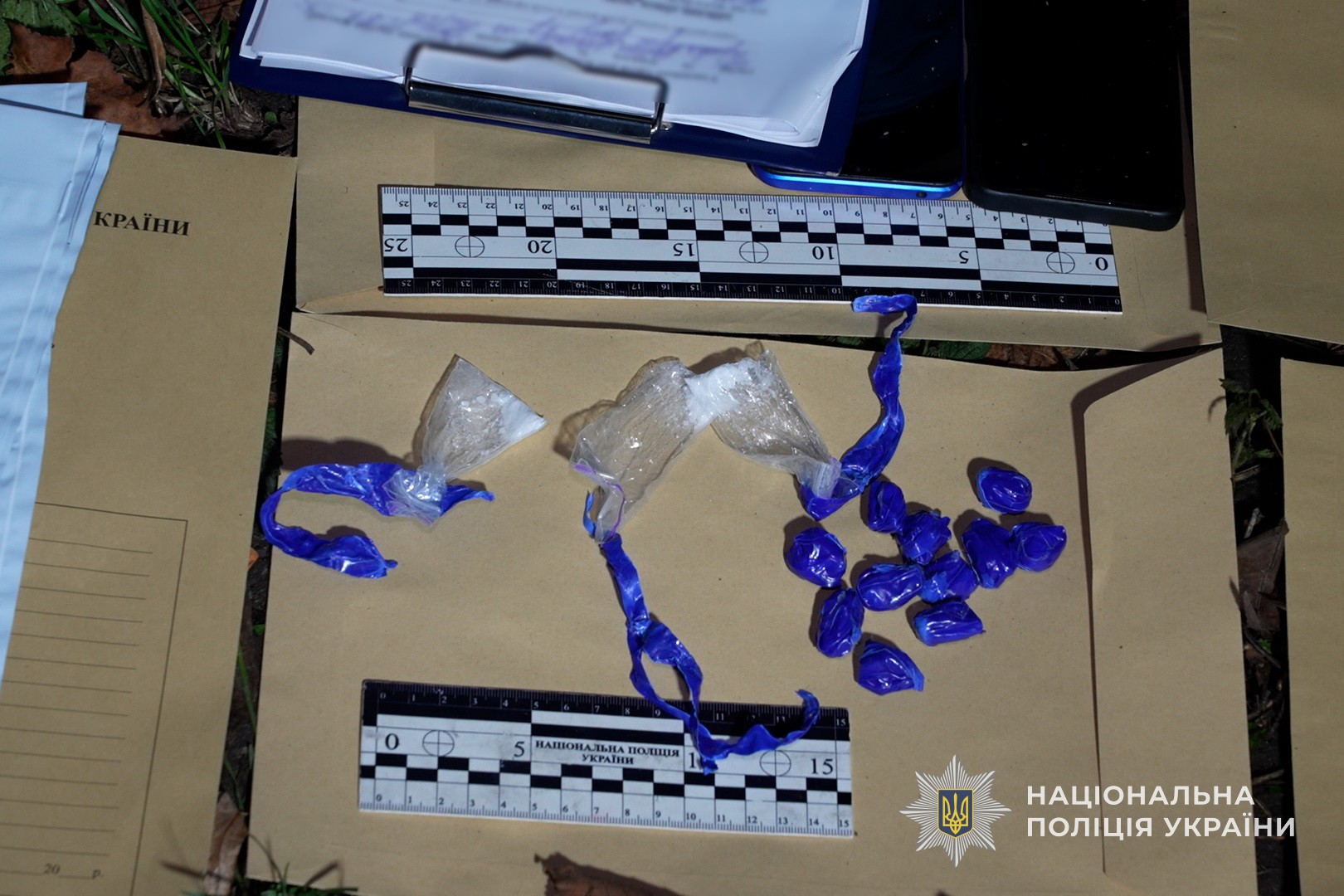 На місці події працювала слідчо-оперативна група поліції. Знайдені психотропи, а також мобільні телефони, які використовувалися задля збуту забороненої до обігу речовини вилучено.