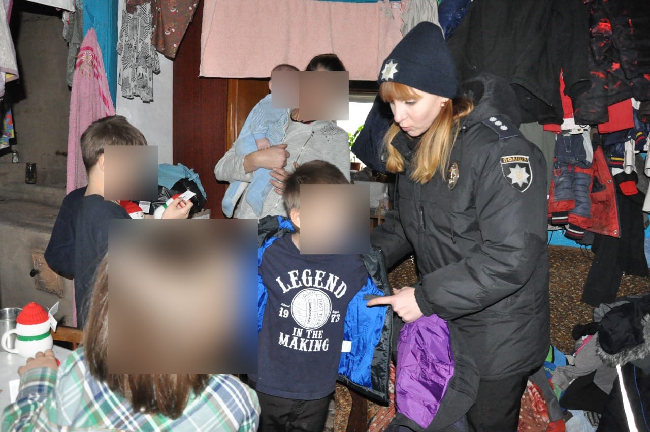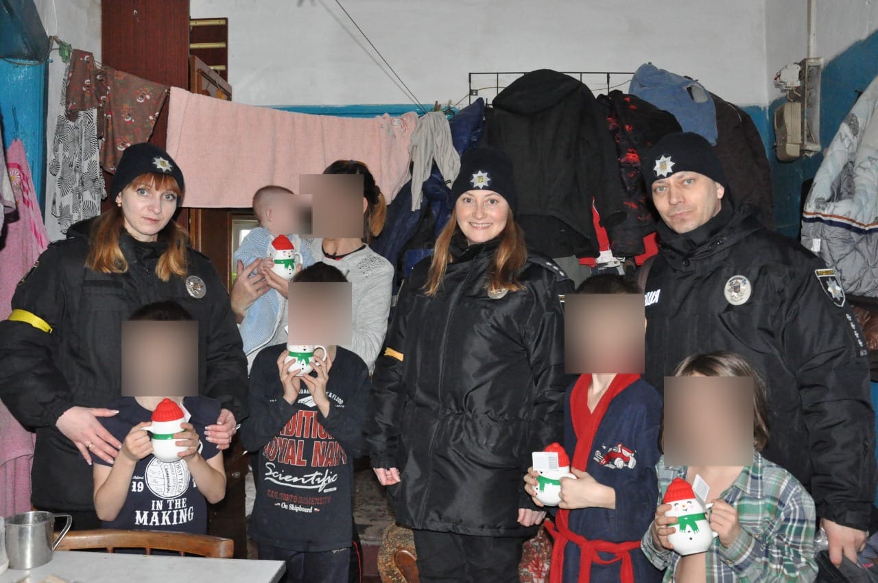 Під час візиту поліцейські привезли та передали для малечі верхній одяг та новорічні сувенірні чашки.