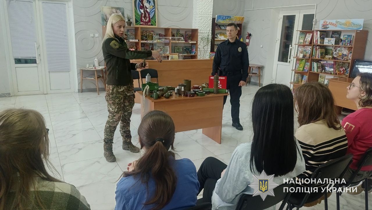 У зв’язку з реаліями сьогодення, правила мінної безпеки повинен знати кожен, і не лише дорослі, а й діти. Тому під час зустрічі поліцейські детально розповіли школярам про те як відрізняти вибухонебезпечні предмети, де вони можуть приховуватись, які знаки попереджають про них та яких правил безпечної поведінки потрібно дотримуватись, при виявленні боєприпасів.