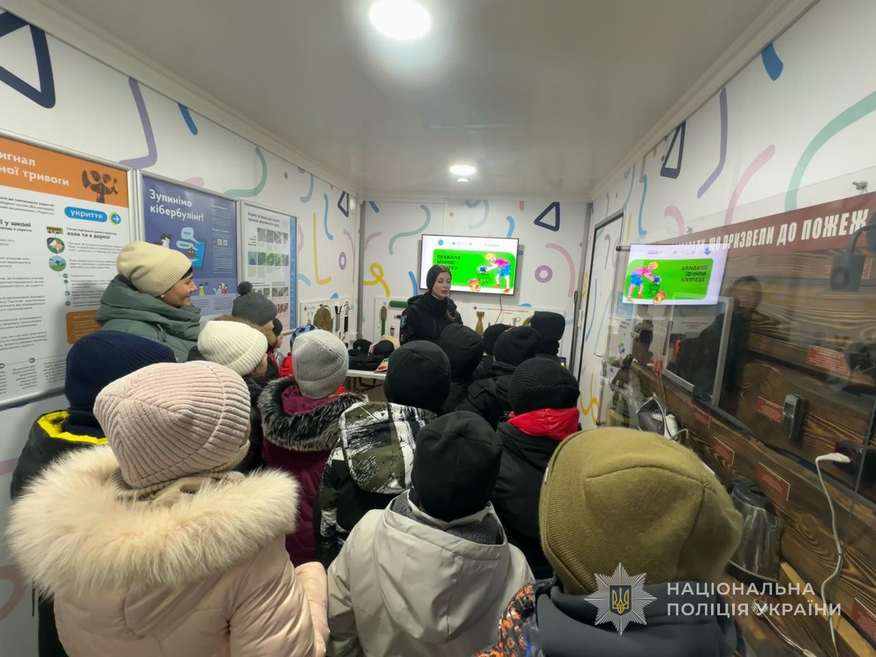 Працівники поліції проводили захід у пересувному класі безпеки, який обладнаний всім необхідним, щоб в повному обсязі донести до дітей потрібну інформацію. Для сприйняття інформації там є брошури, плакати, макети небезпечних для життя та здоров’я людей предметів. Навчання відбувалося в ігровій формі, адже так малеча краще взаємодіє та легше засвоює отриману інформацію.