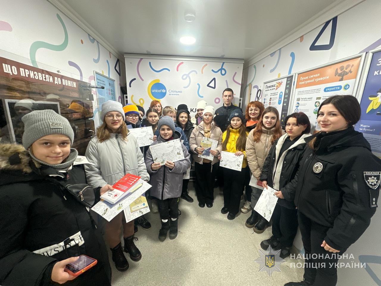 На виїзному занятті ювенальні поліцейські розповіли школярам про найпоширеніші види вибухонебезпечних предметів та про те, які можуть бути наслідки необережного з ними поводження, а також нагадали про алгоритм дій, якого потрібно дотримуватись при виявленні підозрілих знахідок.