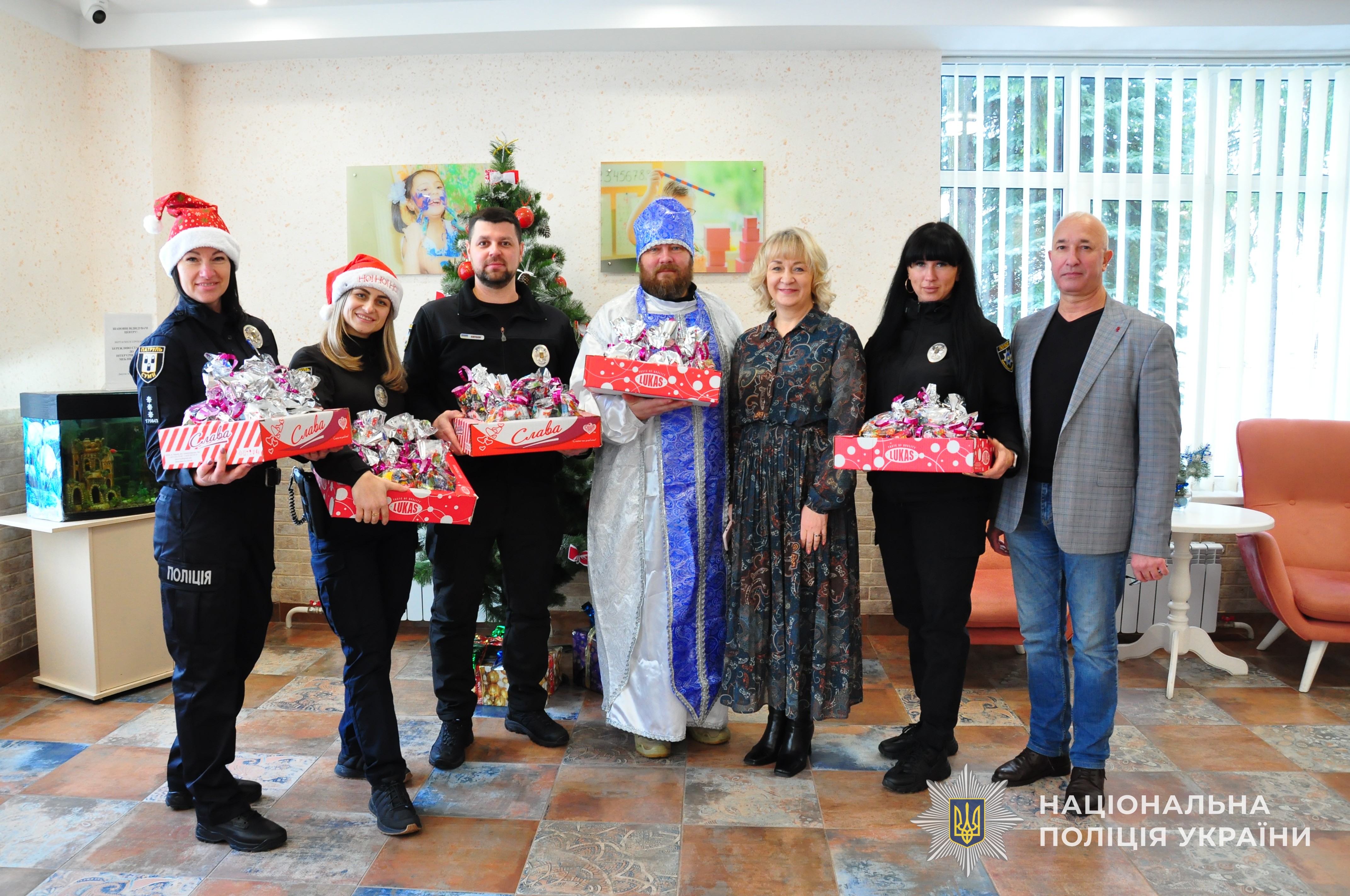 Уже за доброю традицією правоохоронці приїхали до дітлахів, щоб привітати їх з прийдешнім святом. Зустрічали поліцейських у затишній залі, де панувала святкова атмосфера та лунав дитячий сміх.