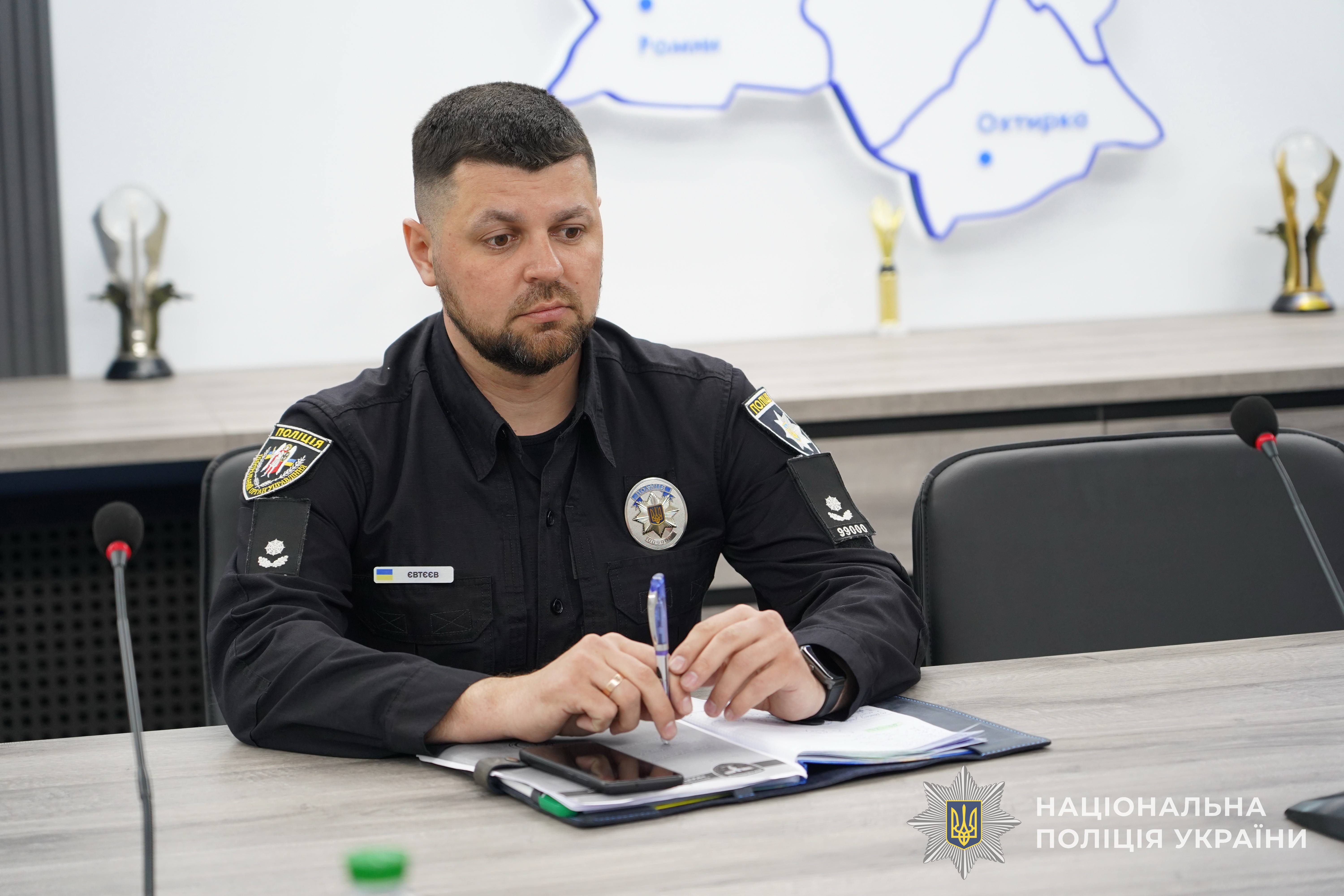 Захід відбувся за участі начальника ГУНП в Сумській області Петра Токаря, старшого інспектора Департаменту головної інспекції та дотримання прав людини НПУ Євгенія Євтєєва, старшого капелана Дмитра Лавриненка та інших представників громадського формування.