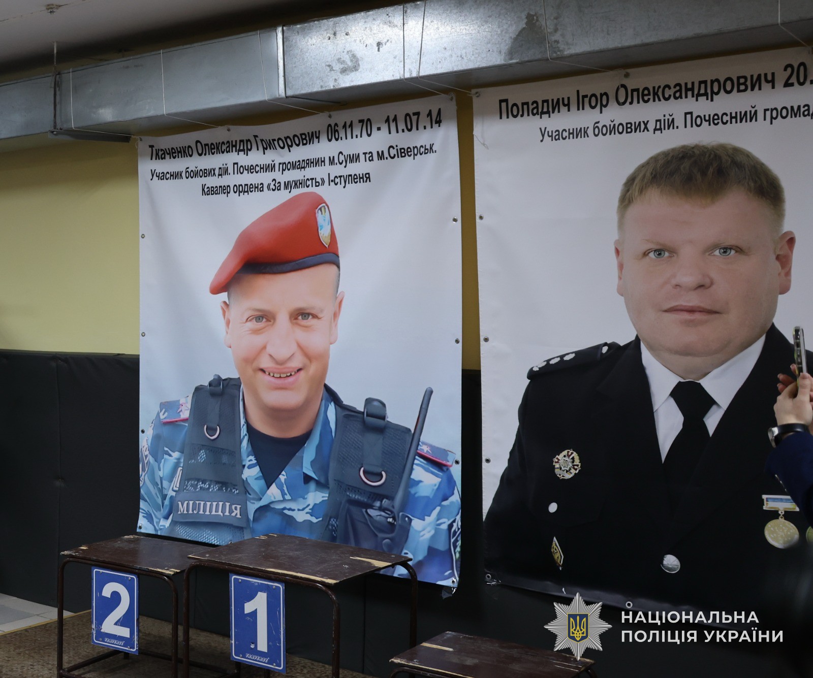 На заході був присутній начальник Управління кадрового забезпечення ГУНП в Сумській області Олександр Сіняєв, керівник КЗ СОР «Ветеран PRO Сумщина» Сергій Кознієнко, а також дружини загиблих поліцейських.