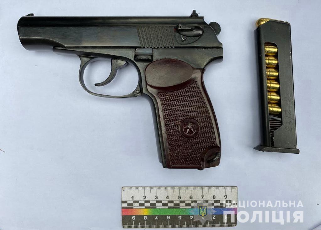 Під час перевірки транспортного засобу працівники поліції виявили пістолет Макарова, один магазин та вісім набоїв калібру 9 мм. Все це 36-річний водій добровільно видав співробітникам поліції та пояснив, що отримав зброю ще на початку березня для відсічі агресії рф.