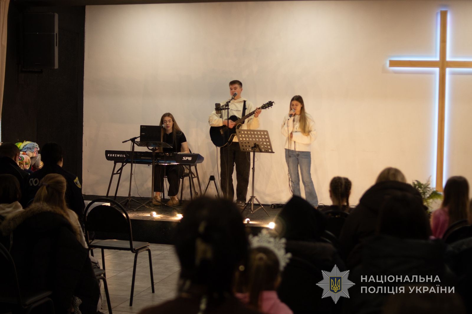 Поліцейські сектору дотримання прав людини та ювенальної превенції у Шостці долучилися до благодійного заходу для дітей та їхніх батьків, які перебували у місцевому спортивному комплексі під час ворожої атаки 12 грудня. Захід було організовано церквою «Скинія» спільно з громадським формуванням «Капеланський патруль».