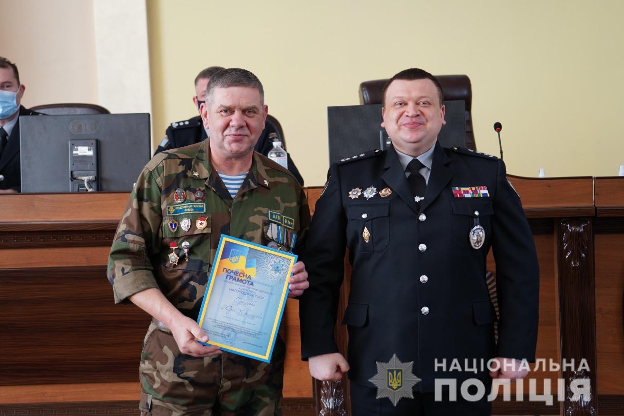 Після чого, за багаторічну сумлінну службу та з нагоди Дня вшанування учасників бойових дій на території інших держав начальник поліції Сумщини нагородив почесною Грамотою заступника начальника відділу слідчого управління ГУНП області Олега Бахметенка.