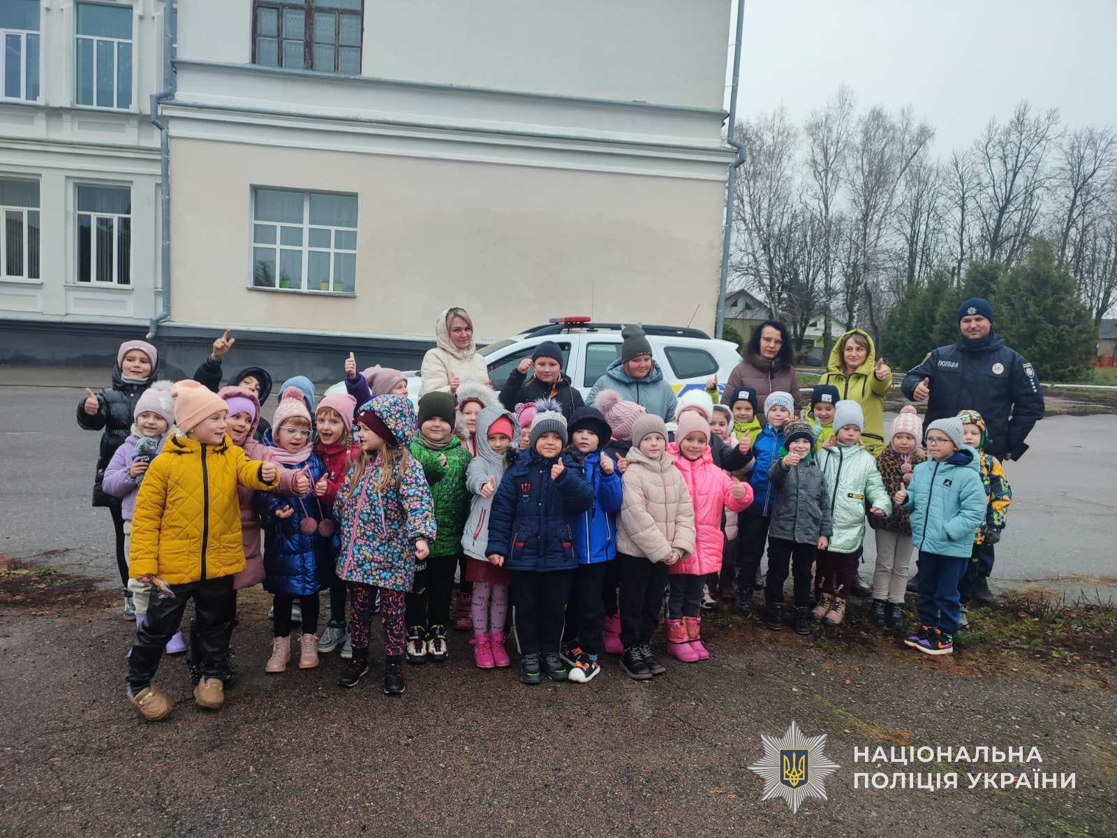 Разом з інспектором вони обговорювали як потрібно правильно переходити дорогу, вивчали сигнали світлофора та дорожні знаки. Крім того, дітлахи спробували себе в ролі поліцейських: приміряли світловідбиваючі жилети, поліцейську амуніцію, сиділи в службовому авто та включали проблискові маячки.