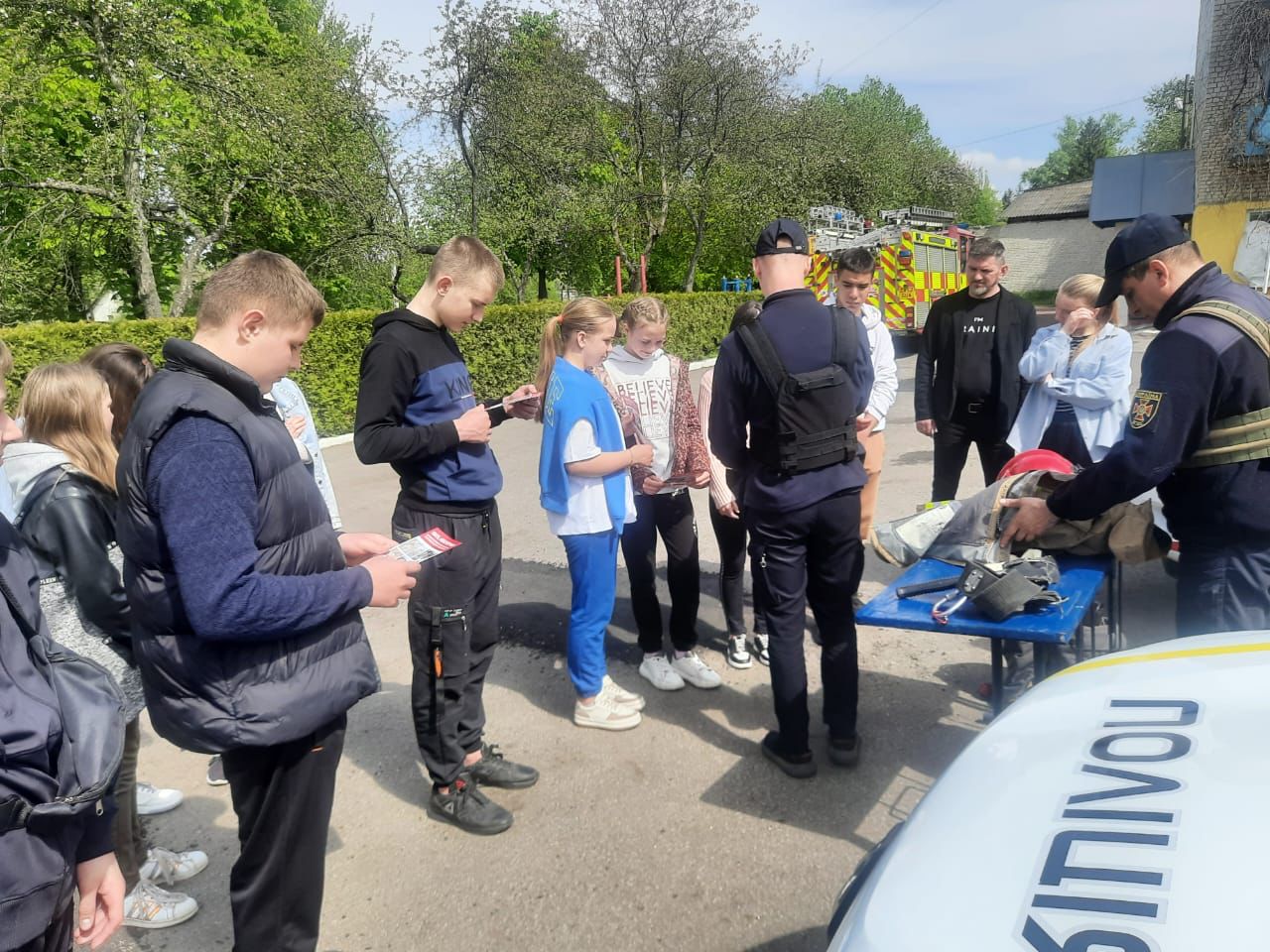 Після чого представники ДСНС розповіли малечі про основи своєї роботи. Продемонстрували службові автомобілі та показали їх можливості, завдяки яким вдається вчасно рятувати людей. Також школярам було нагадано про дотримання правил пожежної безпеки. Окрім того, рятувальники наголосили, що не слід нехтувати сигналами «Повітряна тривога».
