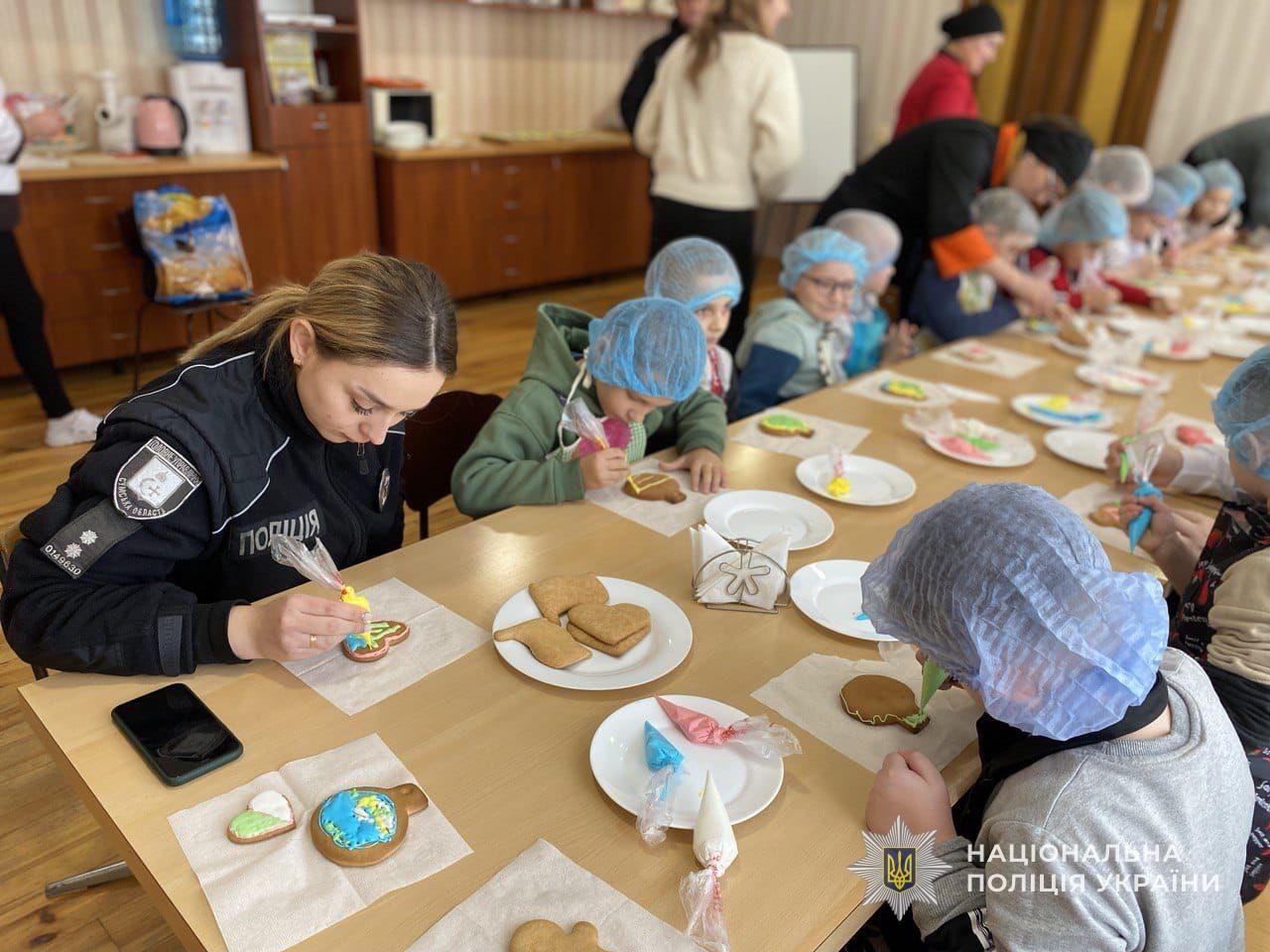 Співробітники ювенальної превенції та дільничні офіцери поліції разом з вихованцями навчальних закладів міста виготовляли солодкі пряники. Такі заняття не лише дарують багато позитивних емоцій, а й розвивають уяву та дрібну моторику рук дітей.