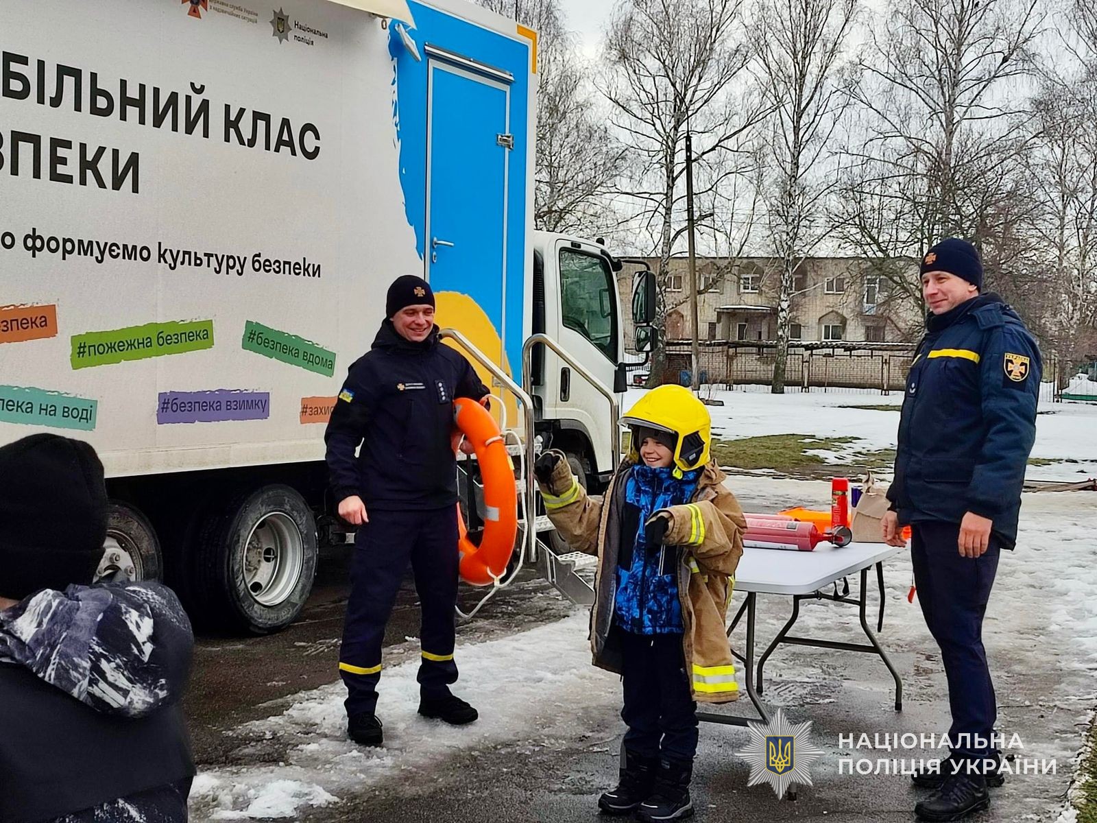 В кінці заняття дітвора мала змогу відчути себе справжніми поліцейськими та рятувальниками, примірявши форму та спеціальне екіпірування.