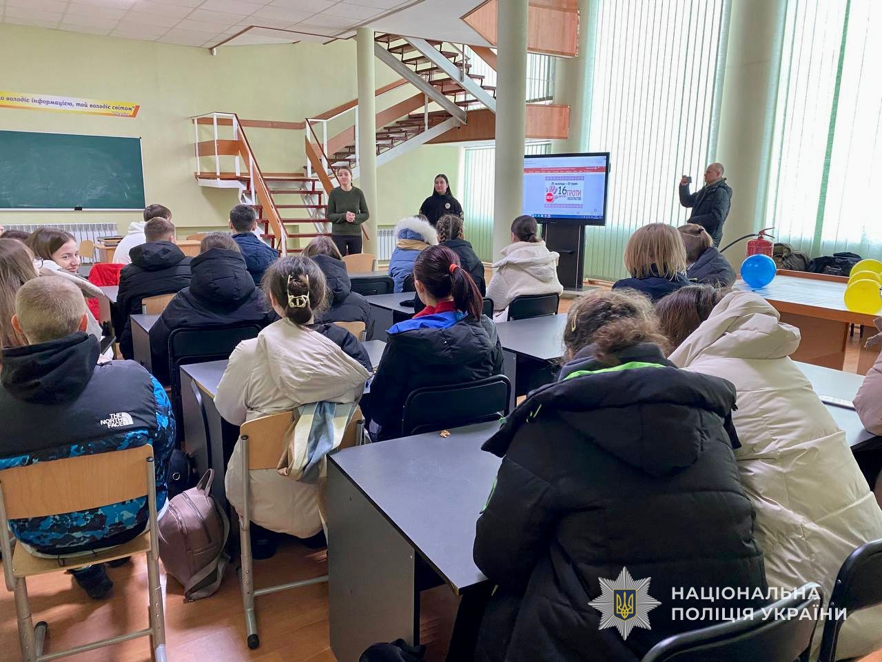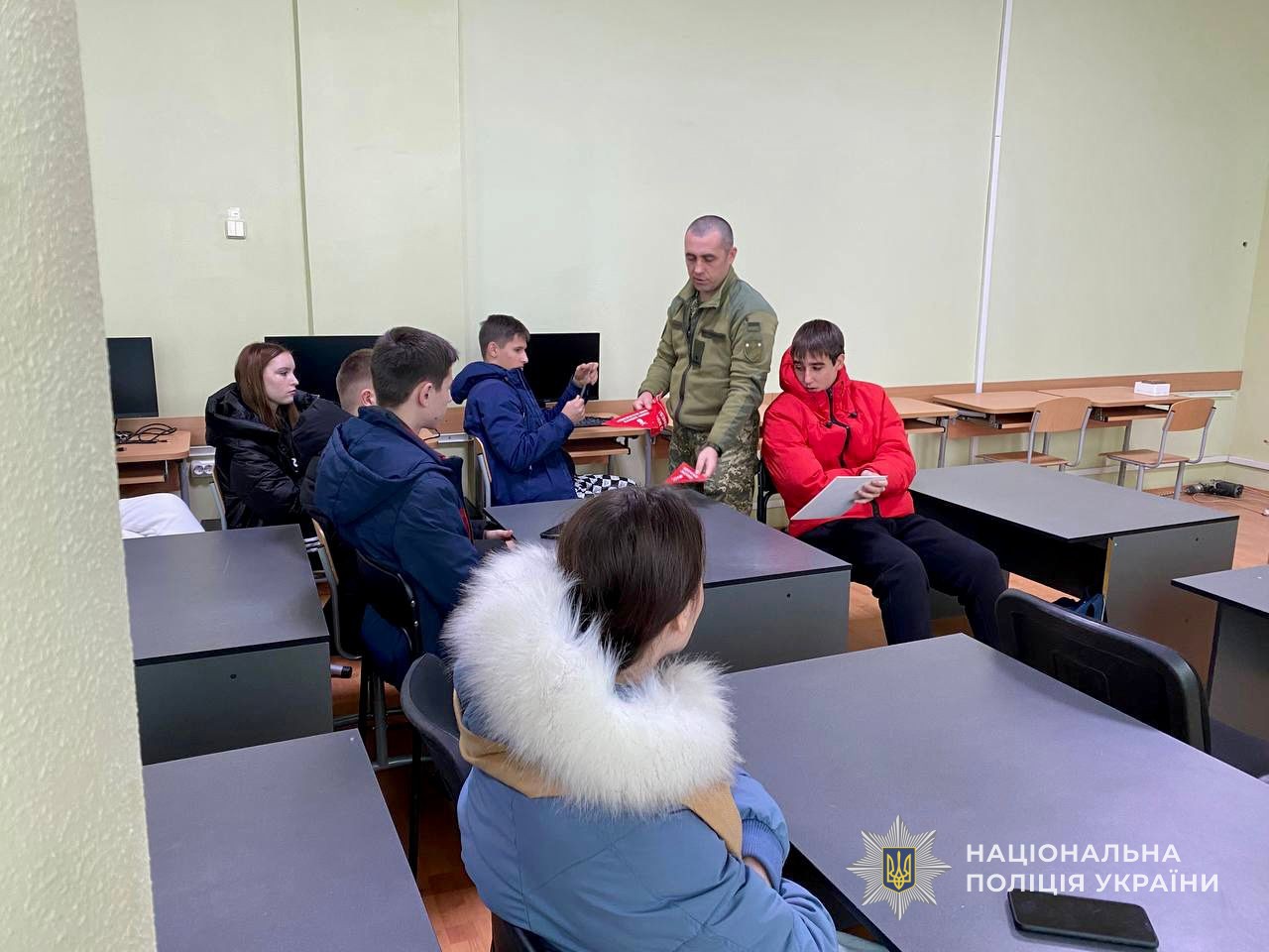 Поліцейська розказала дітям про кримінальну та адміністративну відповідальність, за що вона настає та з якого віку. Також, поговорили про заборону вживання алкогольних напоїв та тютюнопаління. Інспекторка наголосила на погіршенні погодних умов та видимості на дорогах, тому закликала використовувати світло відбивні елементи на одязі. Нагадала про своєчасне реагування на сигнали повітряної тривоги.