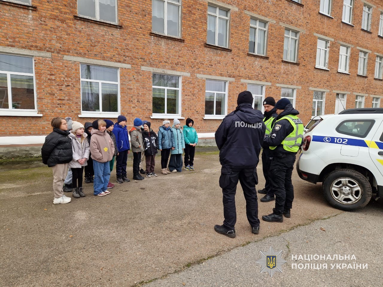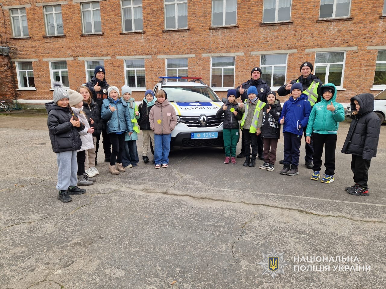 Окремо акцентували, що у осінньо-зимовий період рано темніє та погіршується видимість. Поліція закликала учнів користуватися світловідбивальними елементами на одязі та рюкзаках, щоб бути помітними для водіїв. Під час практичної частини відпрацювали «безпечний перехід» біля школи та роздали пам’ятки.