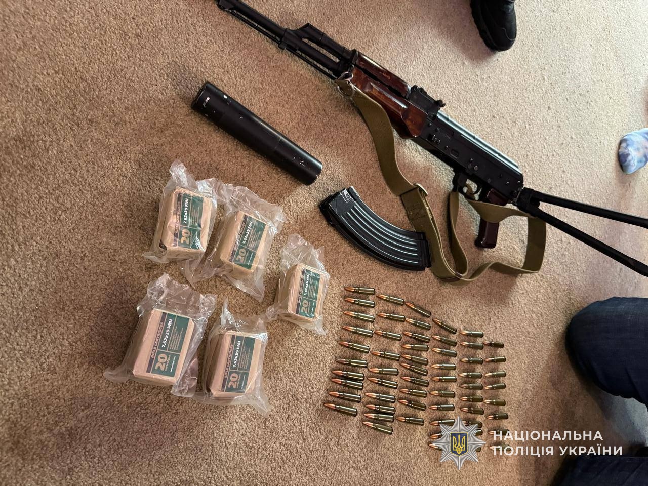 В ході санкціонованого обшуку за місцем мешкання 45-річного чоловіка поліцейські виявили: порошкоподібну речовину та пігулки зовні схожі на наркотичні, пістолет, автомат, більше 250 патронів до них та гранату. Все виявлене правоохоронці вилучили та направили на експертне дослідження.