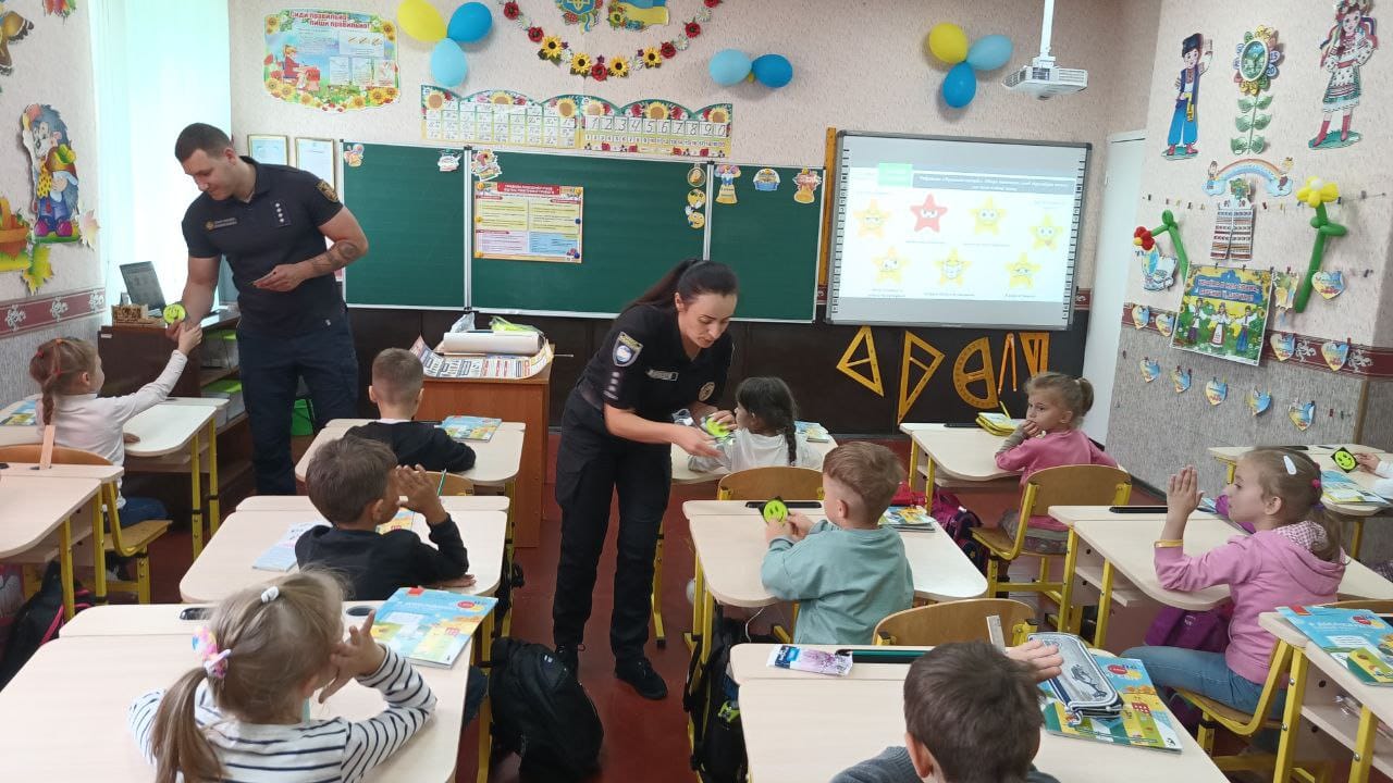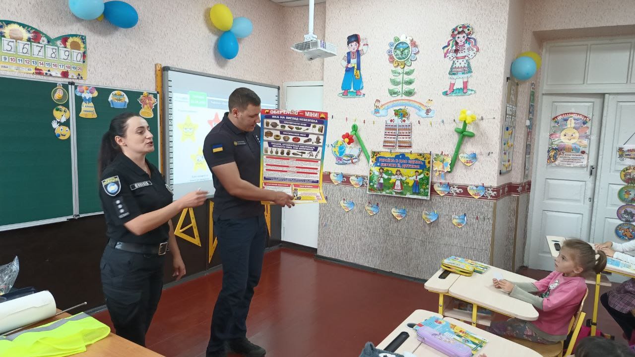 З учнями молодших класів поговорили про мінну безпеку, як поводитись і що робити у разі виявлення підозрілих небезпечних предметів. Також, нагадали школярам про алгоритм дій під час спрацювання сигналів оповіщення «Повітряна тривога» або «Ракетна небезпека» та правила поведінки на дорозі, особливо у вечірній час доби.