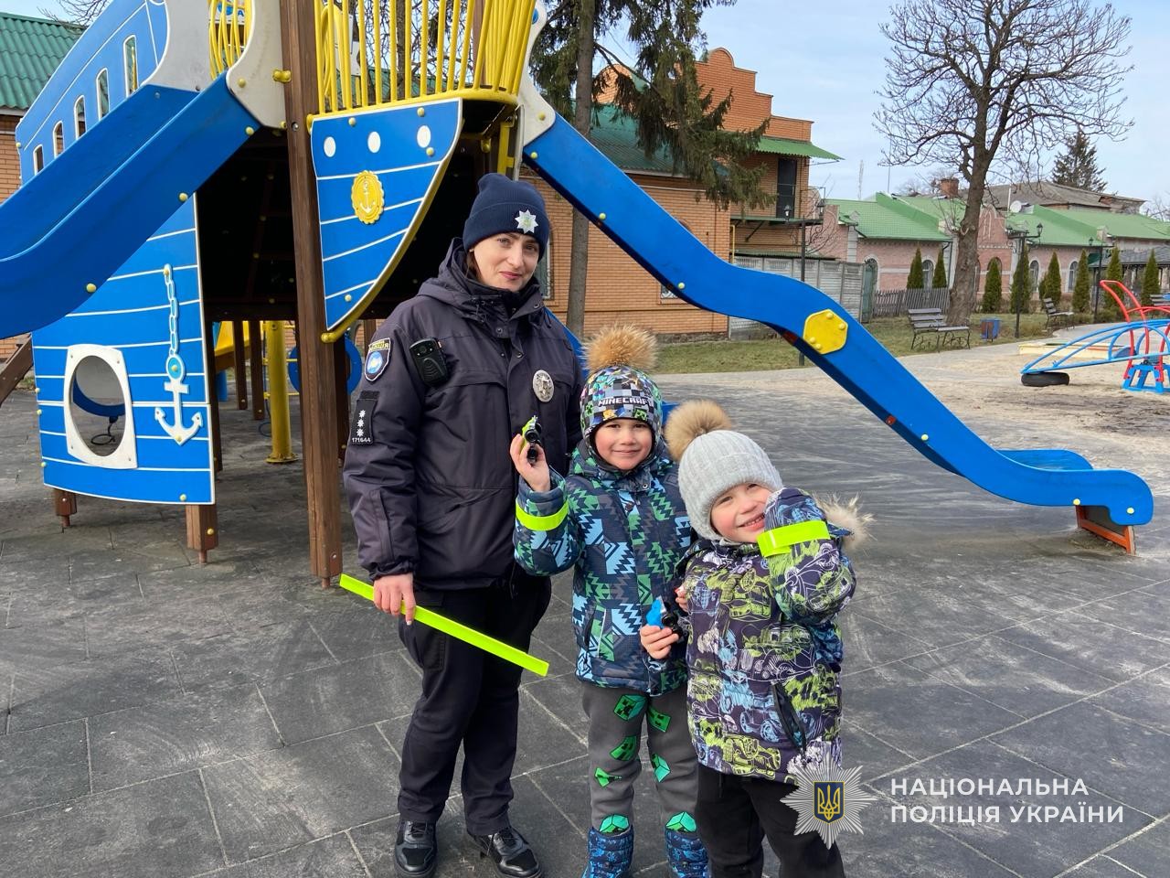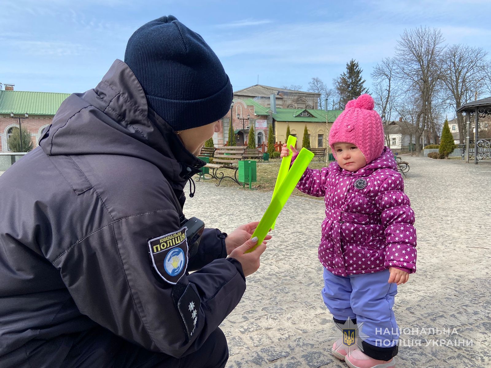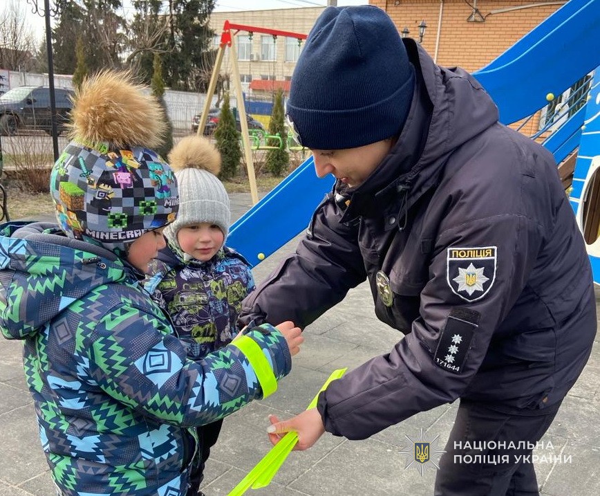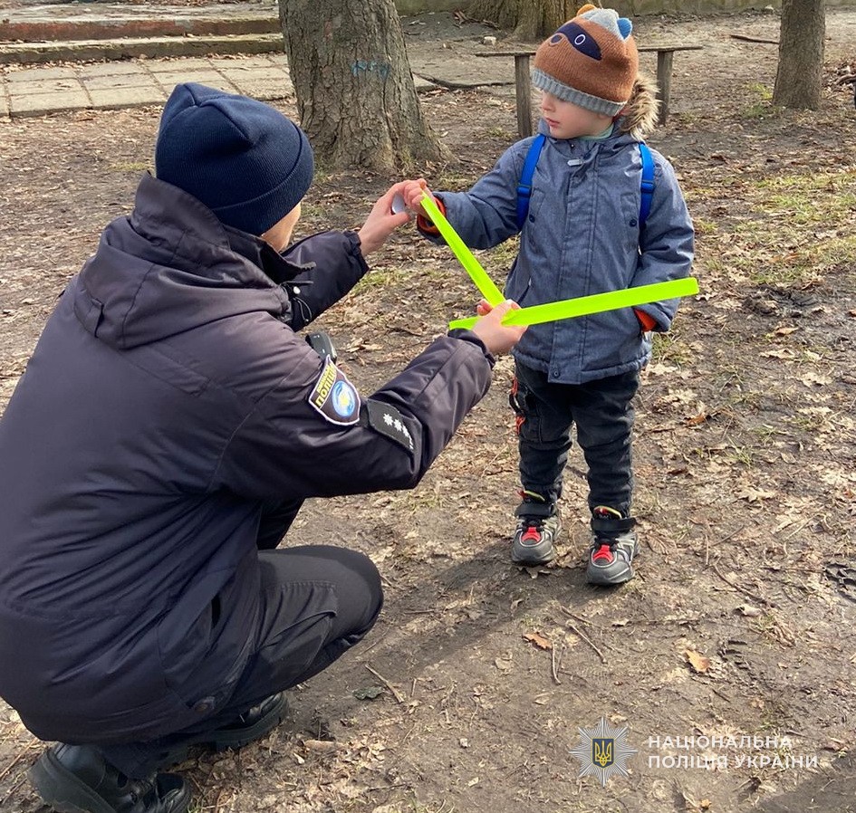 Наголошуючи на безумовному дотриманні правил дорожнього руху дітьми та їх батьками, поліцейські подарували кожному перехожому спеціальні світлоповертаючі флікери, які дозволять бути помітними для водіїв.