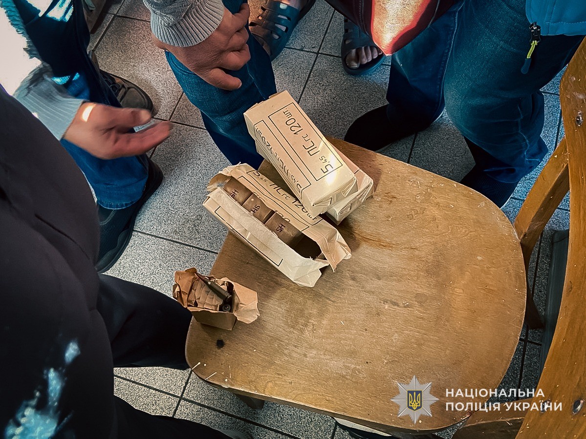 Під час проведення санкціонованого обшуку за місцем мешкання 35-річного чоловіка поліцейські виявили 360 набоїв калібром 5,45 мм, корпус гранати «РГО» із запалом до неї «УДЗ», гранату «Ф-1» та окремо запал до неї «УЗРГМ-2». Вилучені набої та боєприпаси правоохоронці направили на експертне дослідження.